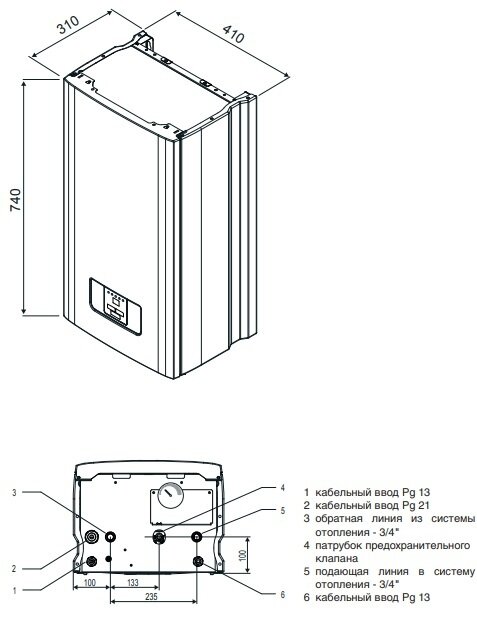 | Патрубок подключения контура отопления | 3/4" |