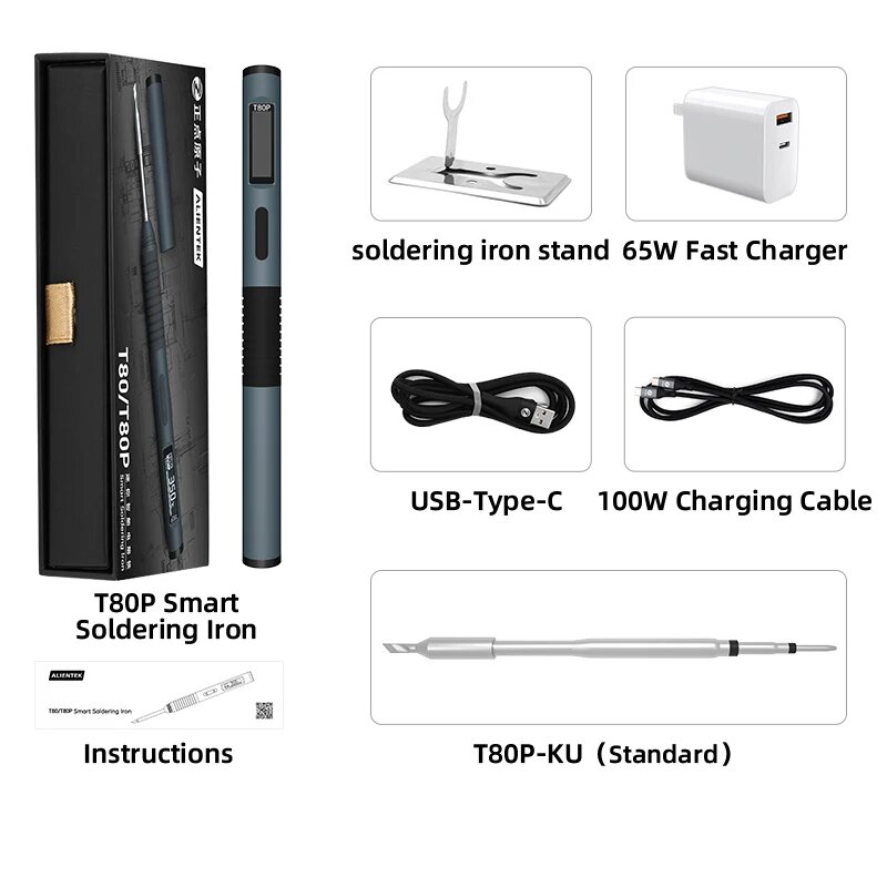 Электрический паяльник ALIENTEK T80/T80P с регулируемой температурой, T80P C2C PD kit, EU: сравнение цен, характеристики, фото, актуальное наличие и цены.