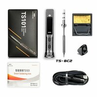 Жало паяльника X 1 (по умолчанию: TS-BC2); Руководство пользователя × 1; Контроллер TS101 X 1; Силиконовый кабель USB-C X 1 (для передачи данных и ввода PD); Противоскользящий колпачок × 1;