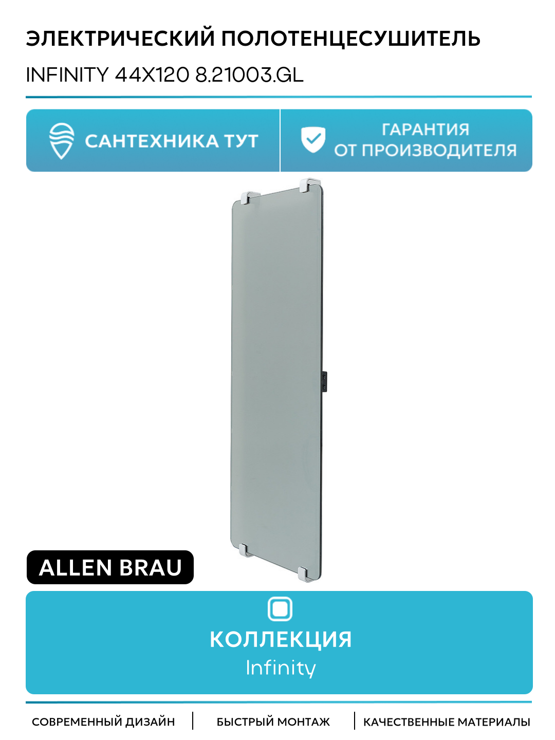 Купить Электрический полотенцесушитель Allen Brau Infinity 44×120 8.21003. GL зеркальный с доставкой по всей России.