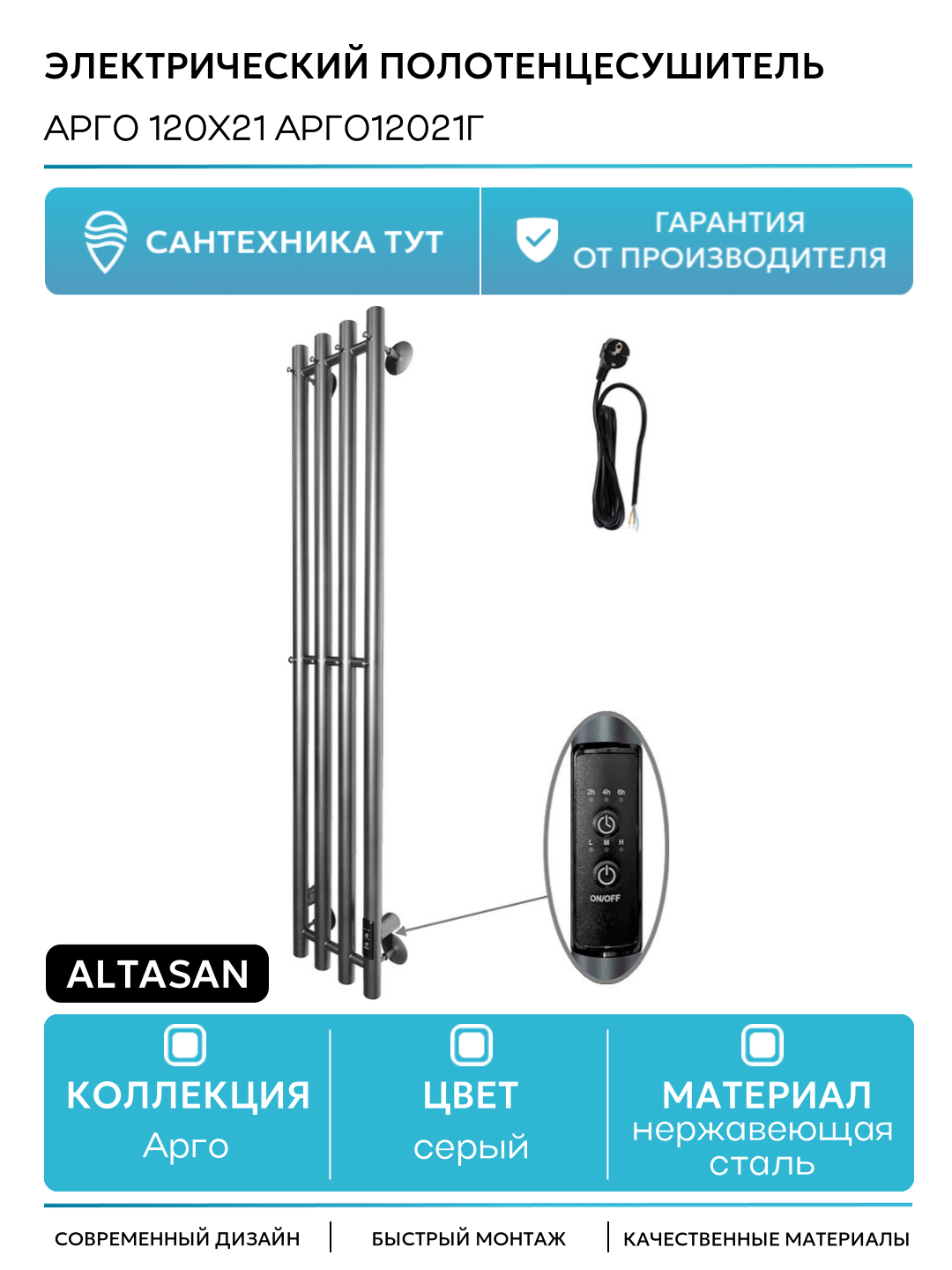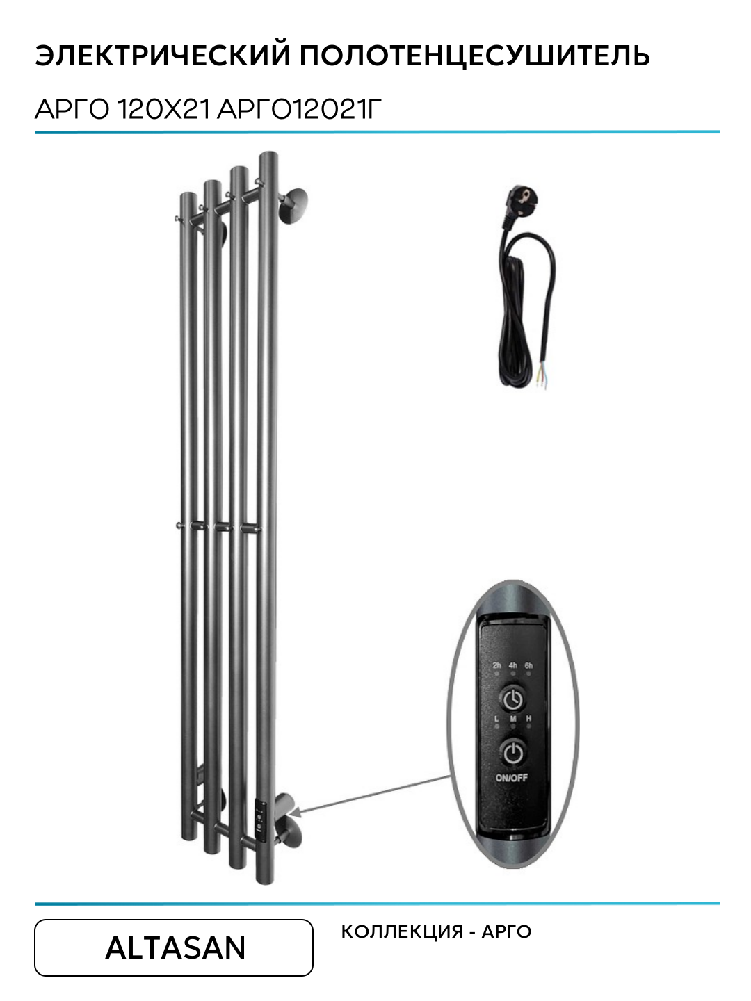 Электрический полотенцесушитель Altasan Арго 120х21 Арго12021Г Графит нержавеющая сталь: сравнение цен, характеристики, фото, актуальное наличие и цены.