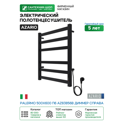 Купить Электрический полотенцесушитель Azario Palermo 500×600 П6 AZ83856B диммер справа Черный с доставкой по всей России. Электрический полотенцесушитель Azario Palermo 500×600 П6 AZ83856B диммер справа Черный: сравнение цен, характеристики, фото, актуальное наличие и цены.