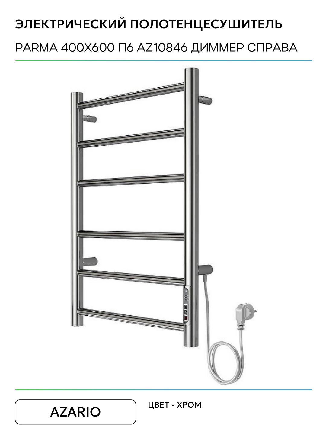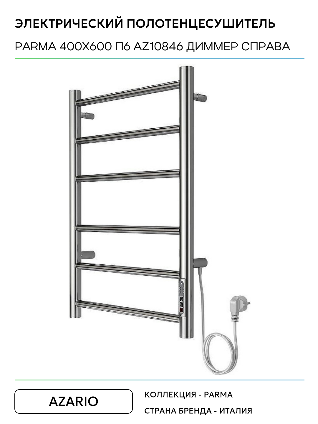 Электрический полотенцесушитель Azario Parma 400×600 П6 AZ10846 диммер справа Хром Италия: сравнение цен, характеристики, фото, актуальное наличие и цены.