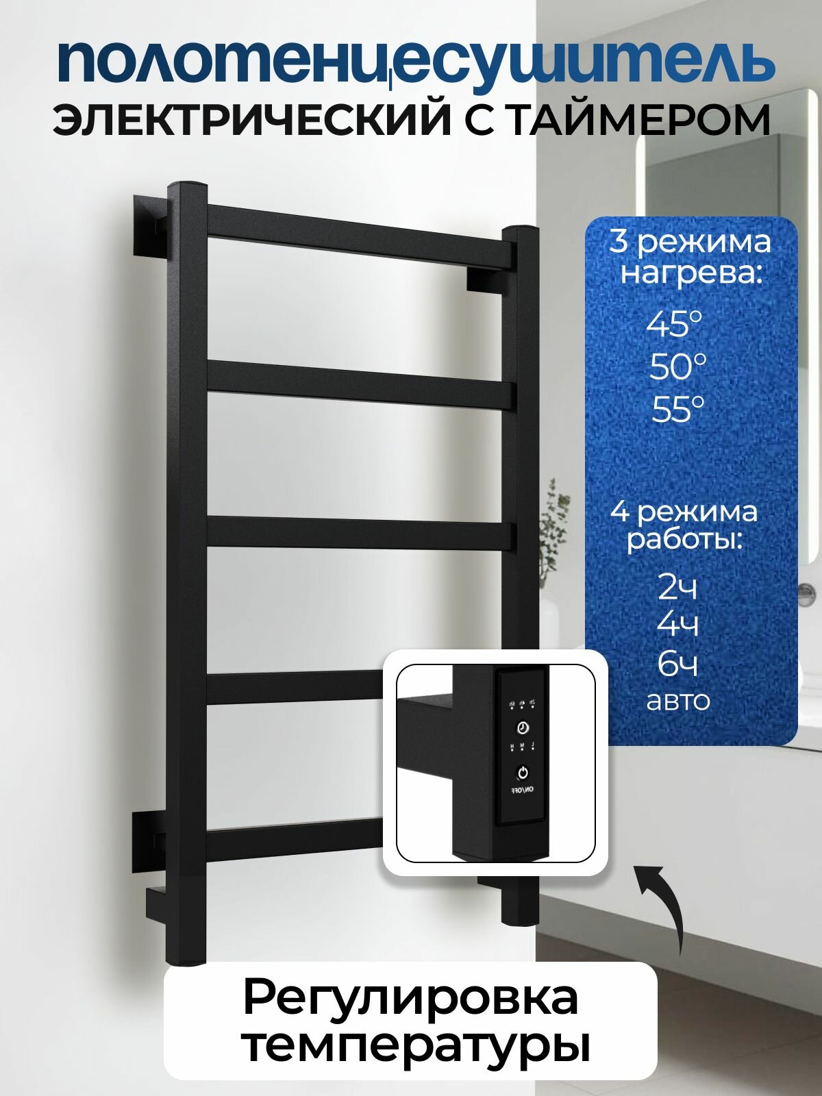 Электрический полотенцесушитель черный лесенка 75х40 Entero / cкрытый монтаж / правое и левое подключение: сравнение цен, характеристики, фото, актуальное наличие и цены.