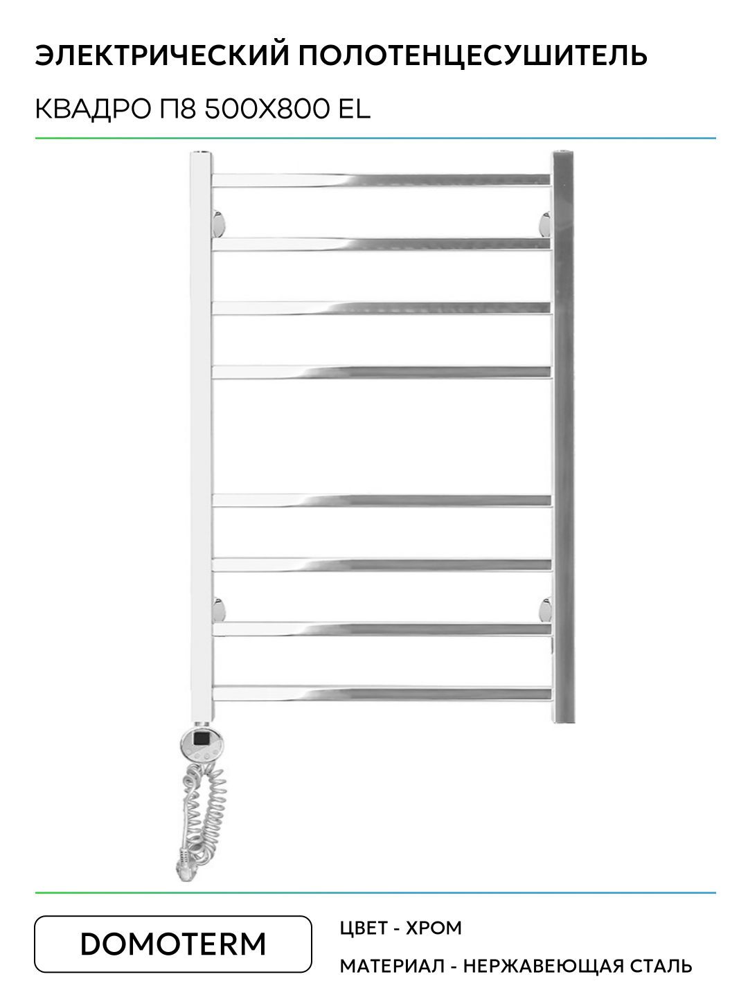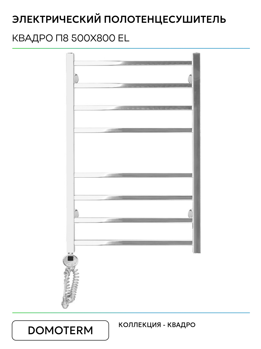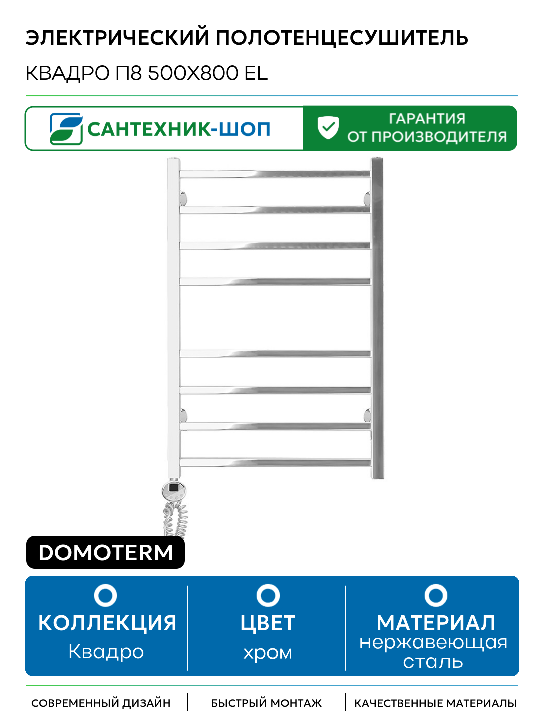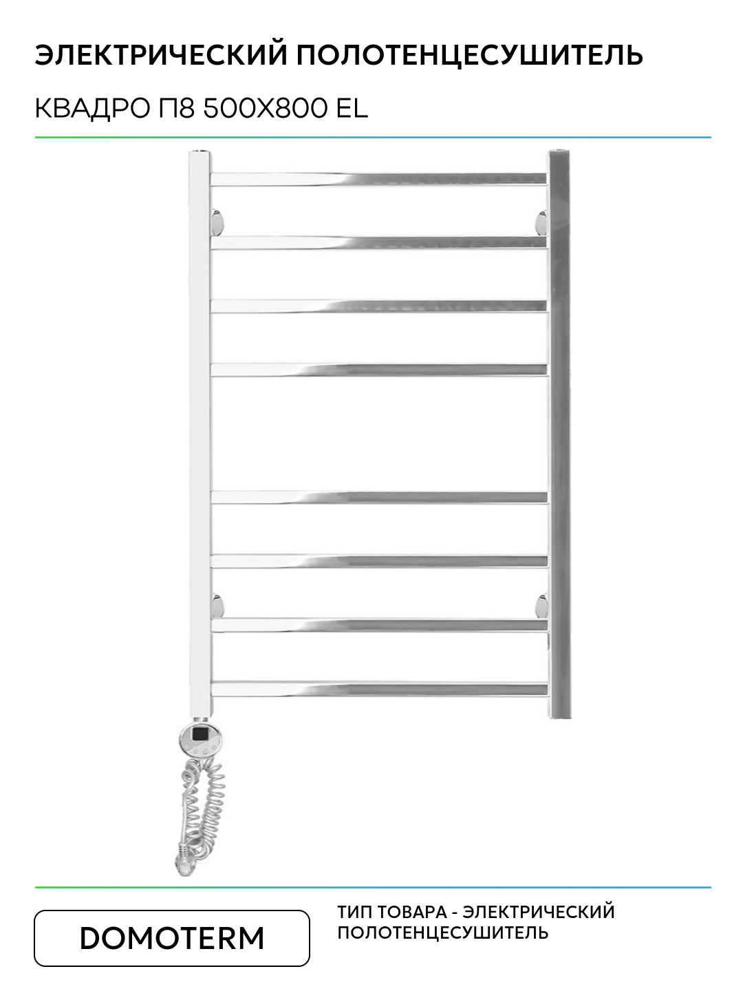 Электрический полотенцесушитель Domoterm Квадро П8 500×800 EL нержавеющая сталь: сравнение цен, характеристики, фото, актуальное наличие и цены.