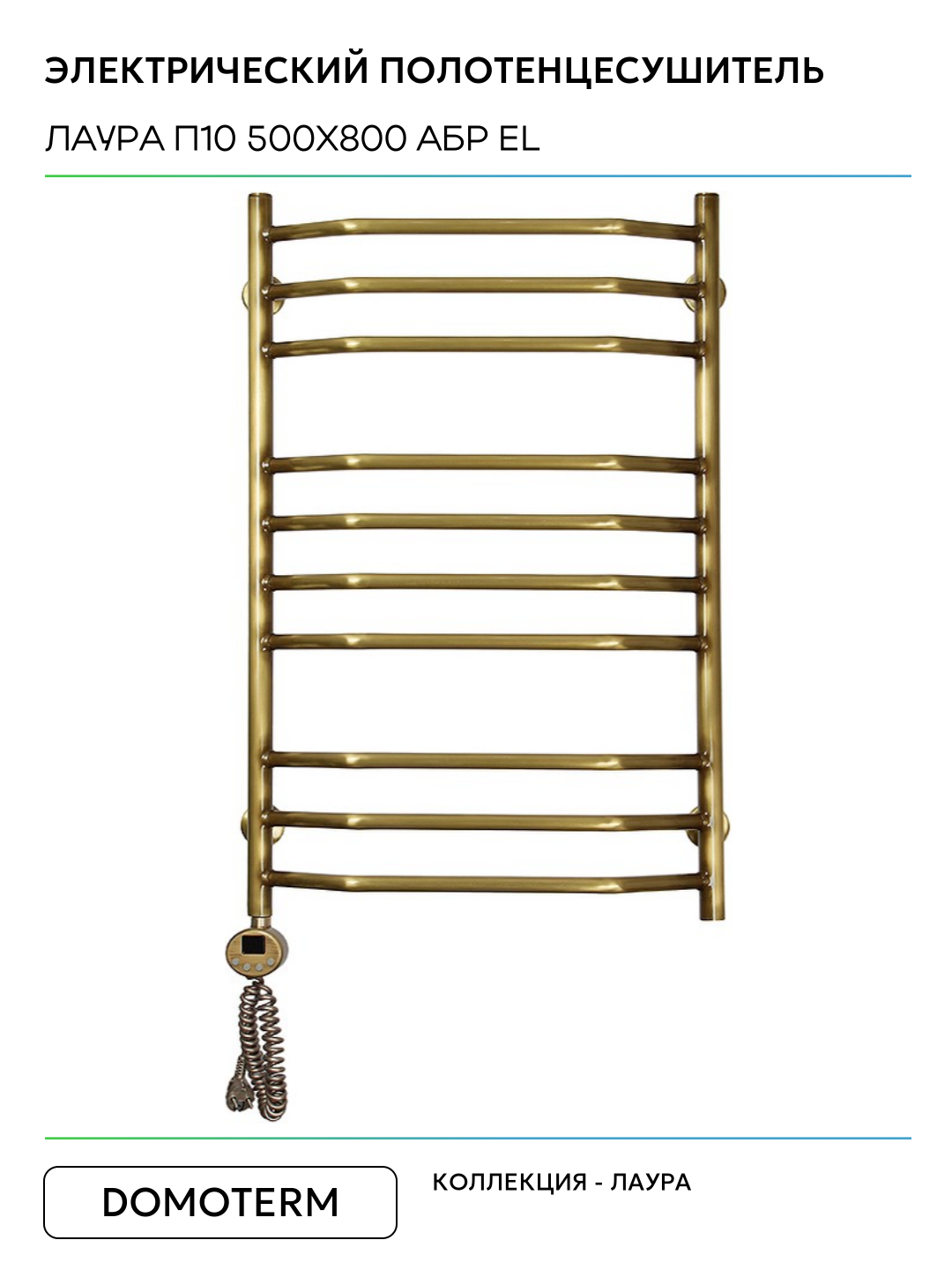 Купить Электрический полотенцесушитель Domoterm Лаура П10 500×800 АБР EL латунь с доставкой по всей России. Электрический полотенцесушитель Domoterm Лаура П10 500×800 АБР EL латунь: сравнение цен, характеристики, фото, актуальное наличие и цены.