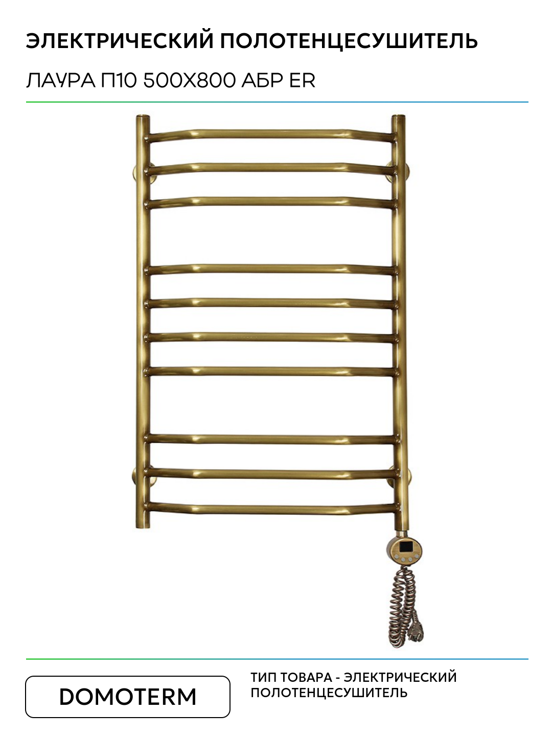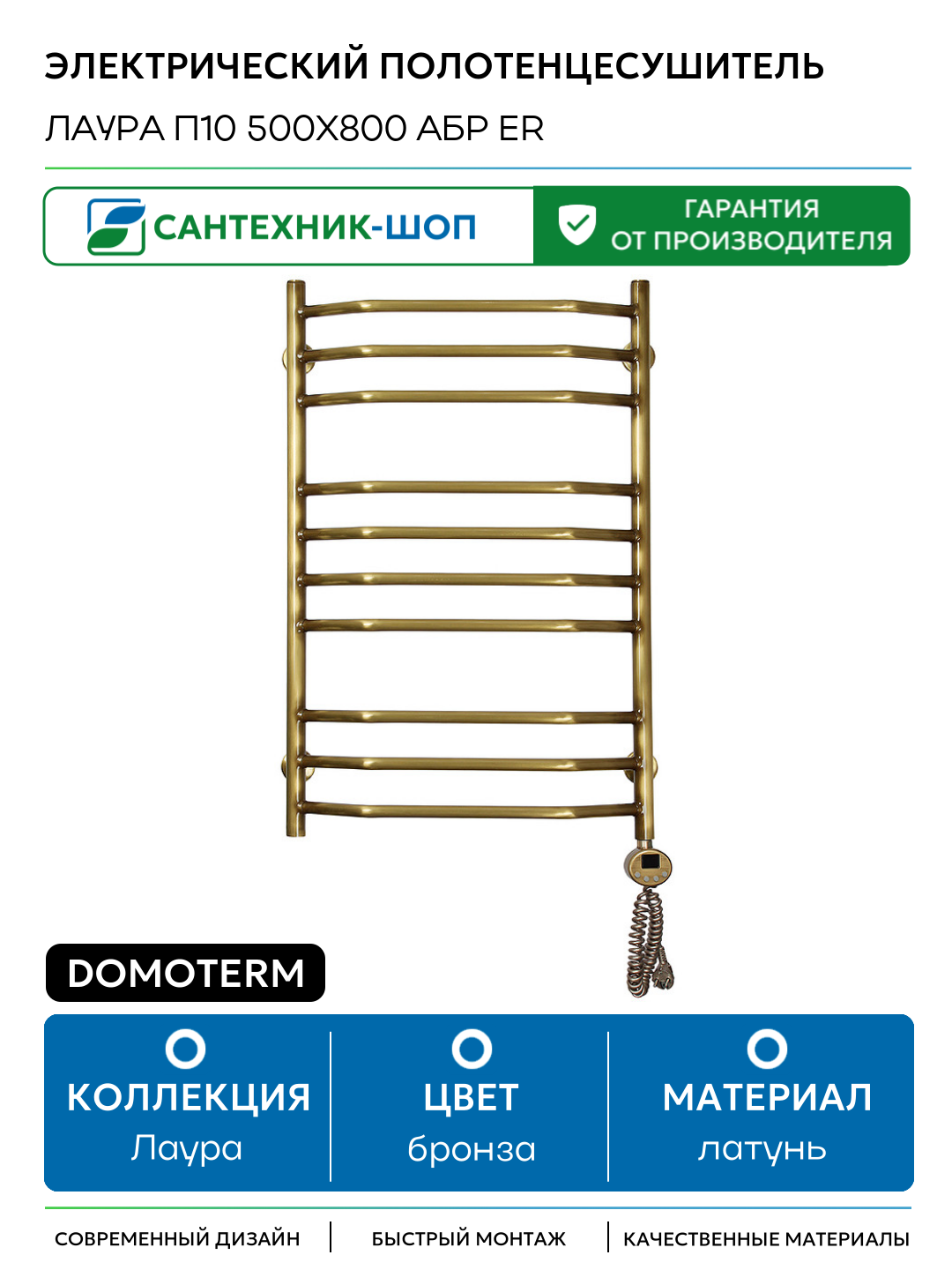 Купить Электрический полотенцесушитель Domoterm Лаура П10 500×800 АБР ER латунь с доставкой по всей России. Электрический полотенцесушитель Domoterm Лаура П10 500×800 АБР ER латунь: сравнение цен, характеристики, фото, актуальное наличие и цены.