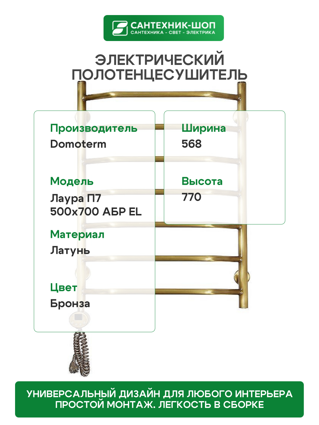 Купить Электрический полотенцесушитель Domoterm Лаура П7 500×700 АБР EL Античная бронза латунь с доставкой по всей России. Электрический полотенцесушитель Domoterm Лаура П7 500×700 АБР EL Античная бронза латунь: сравнение цен, характеристики, фото, актуальное наличие и цены.
