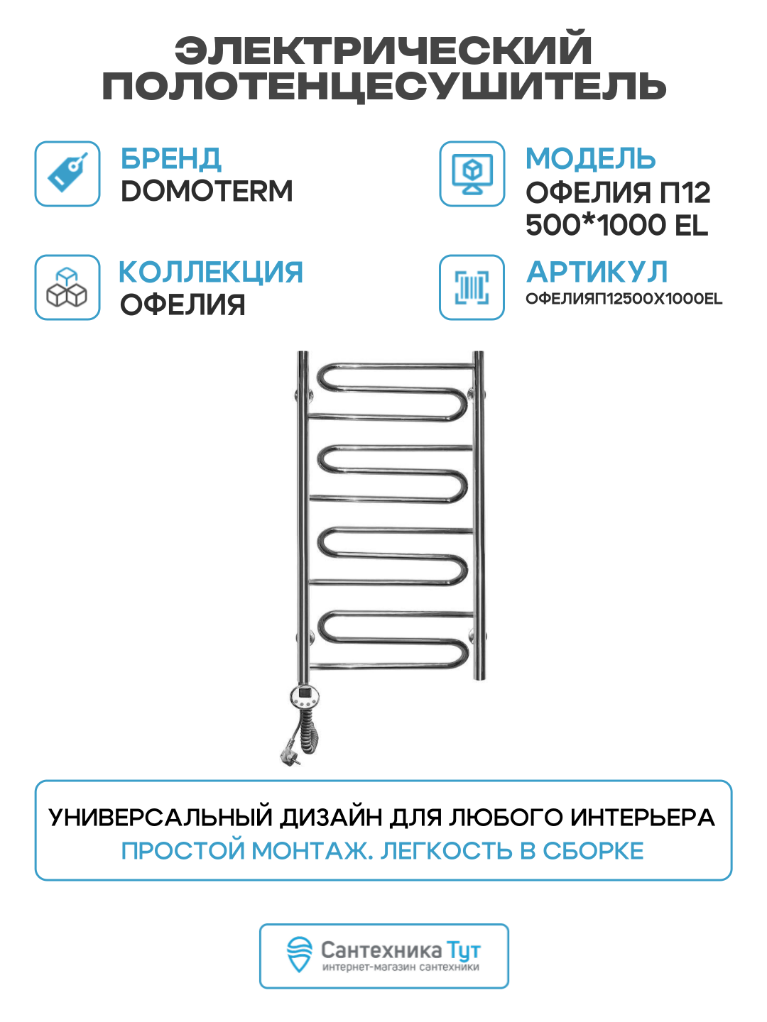 Купить Электрический полотенцесушитель Domoterm Офелия П12 500*1000 EL нержавеющая сталь с доставкой по всей России. Электрический полотенцесушитель Domoterm Офелия П12 500*1000 EL нержавеющая сталь: сравнение цен, характеристики, фото, актуальное наличие и цены.