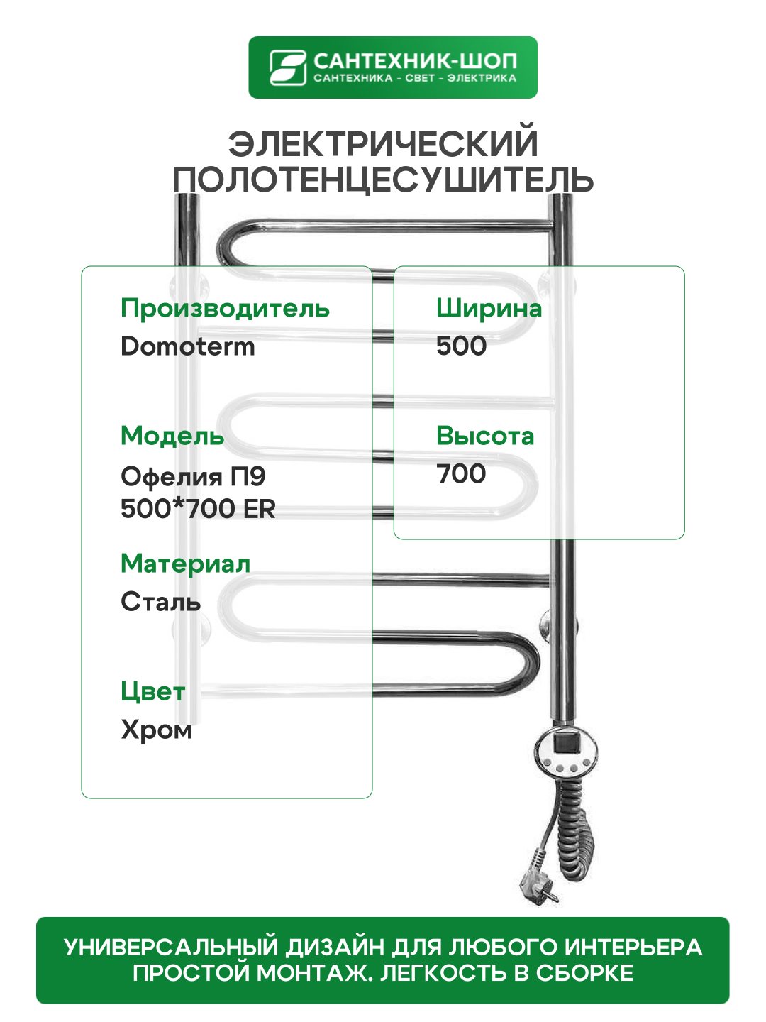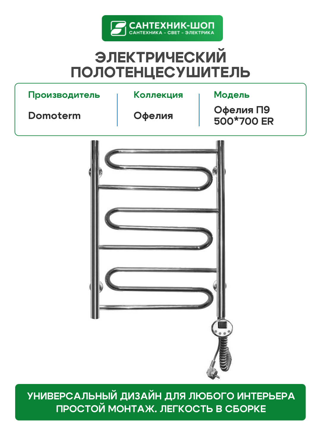 Купить Электрический полотенцесушитель Domoterm Офелия П9 500*700 ER Хром нержавеющая сталь с доставкой по всей России. Электрический полотенцесушитель Domoterm Офелия П9 500*700 ER Хром нержавеющая сталь: сравнение цен, характеристики, фото, актуальное наличие и цены.