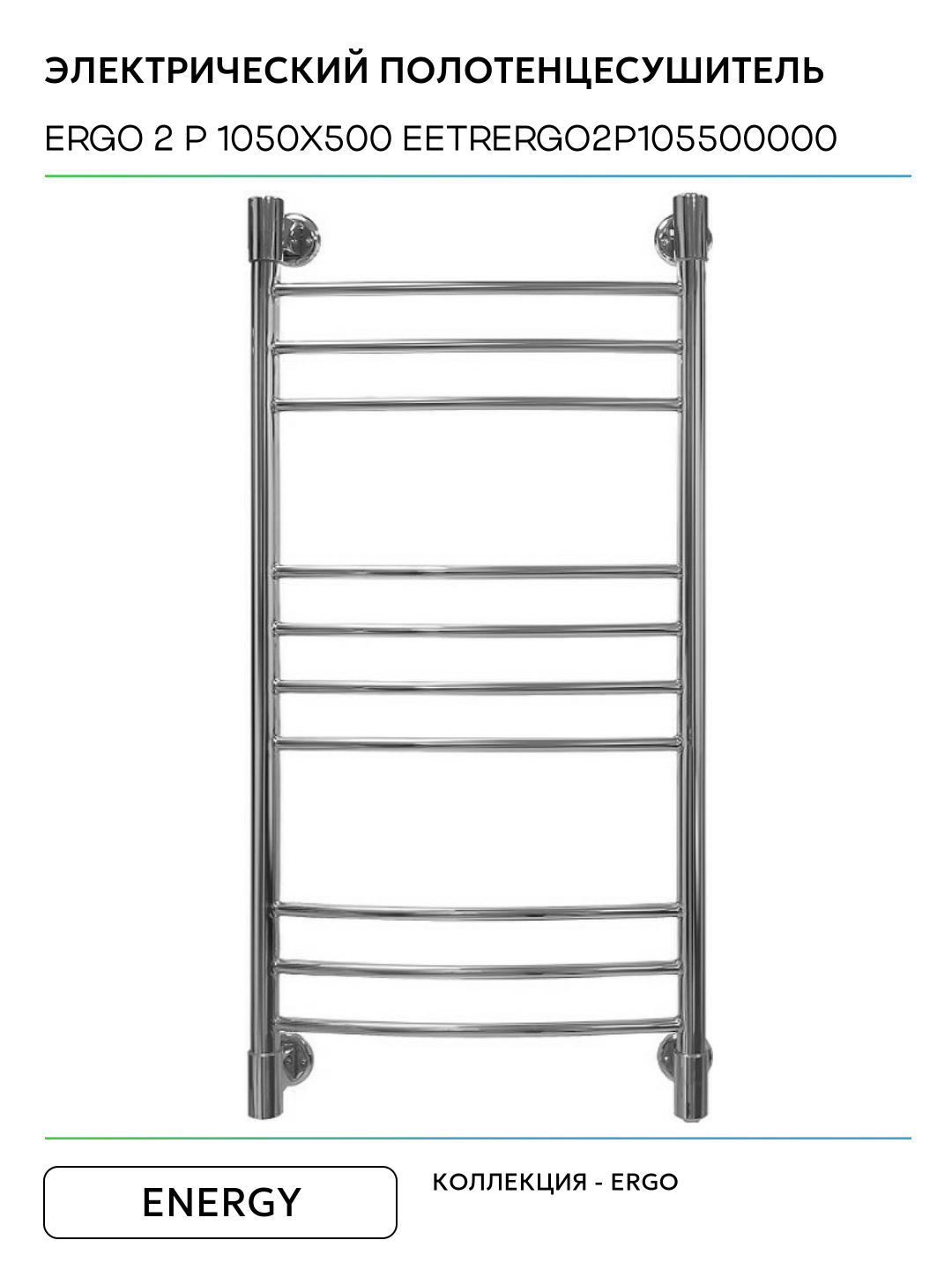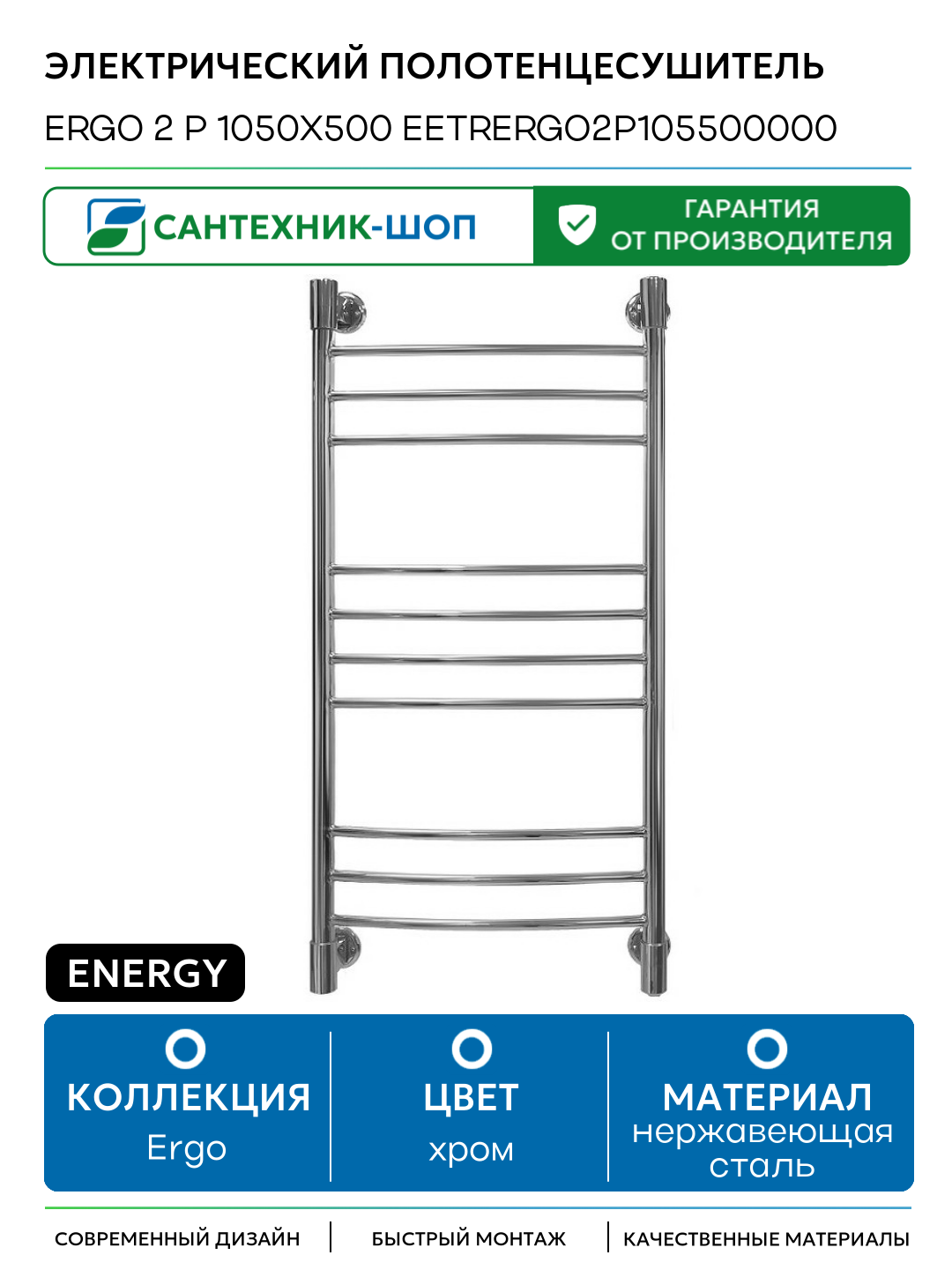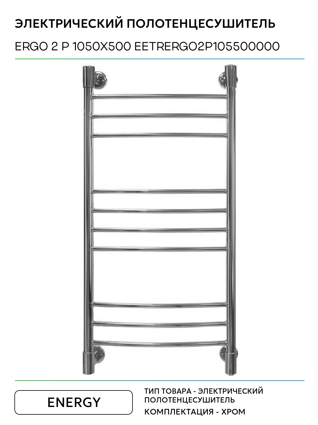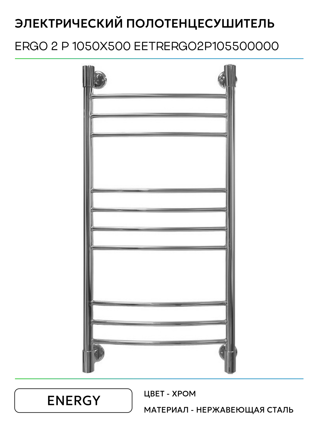 Электрический полотенцесушитель Energy Ergo 2 P 1050×500 EETRERGO2P105500000 Хром нержавеющая сталь: сравнение цен, характеристики, фото, актуальное наличие и цены.