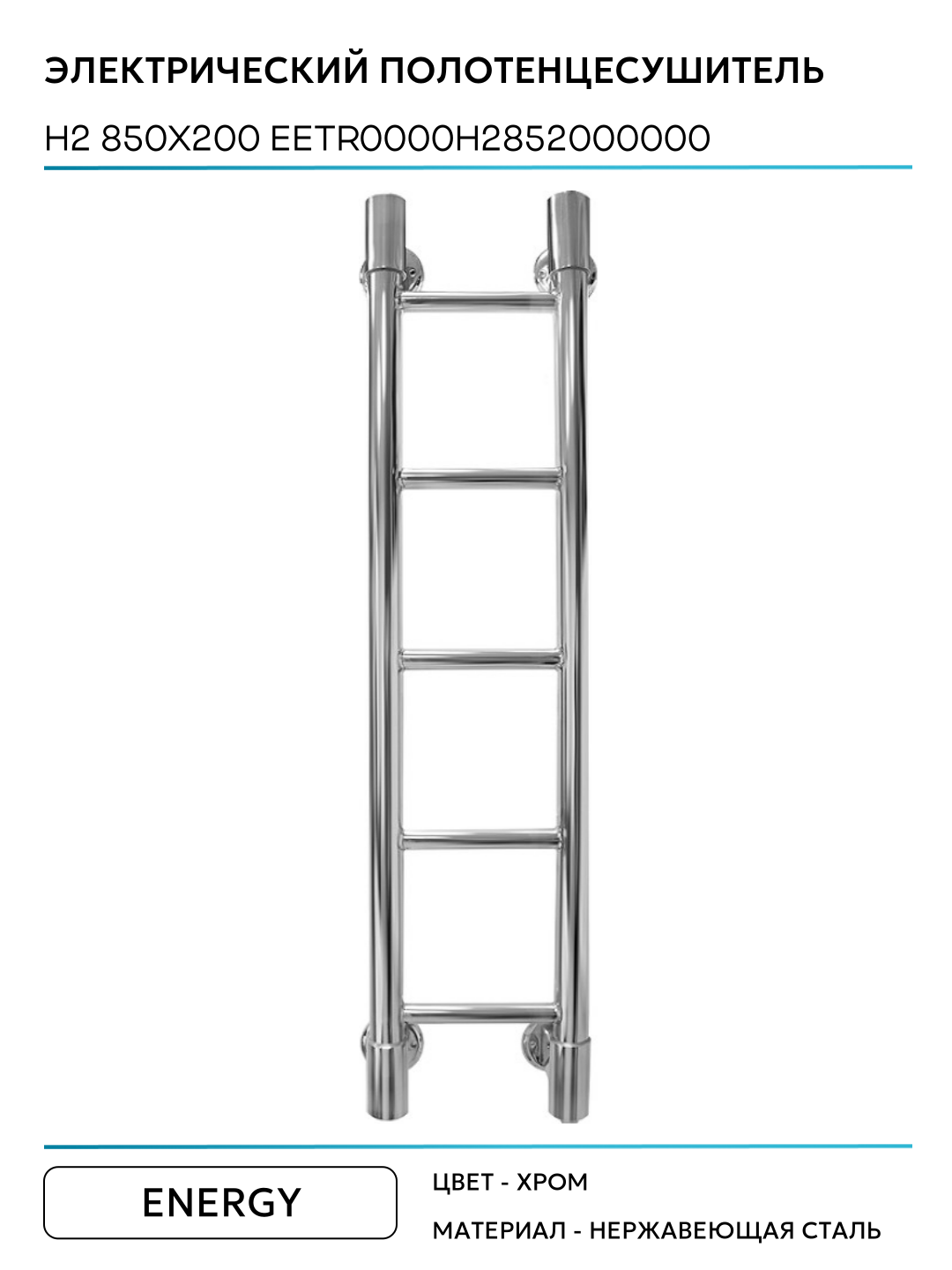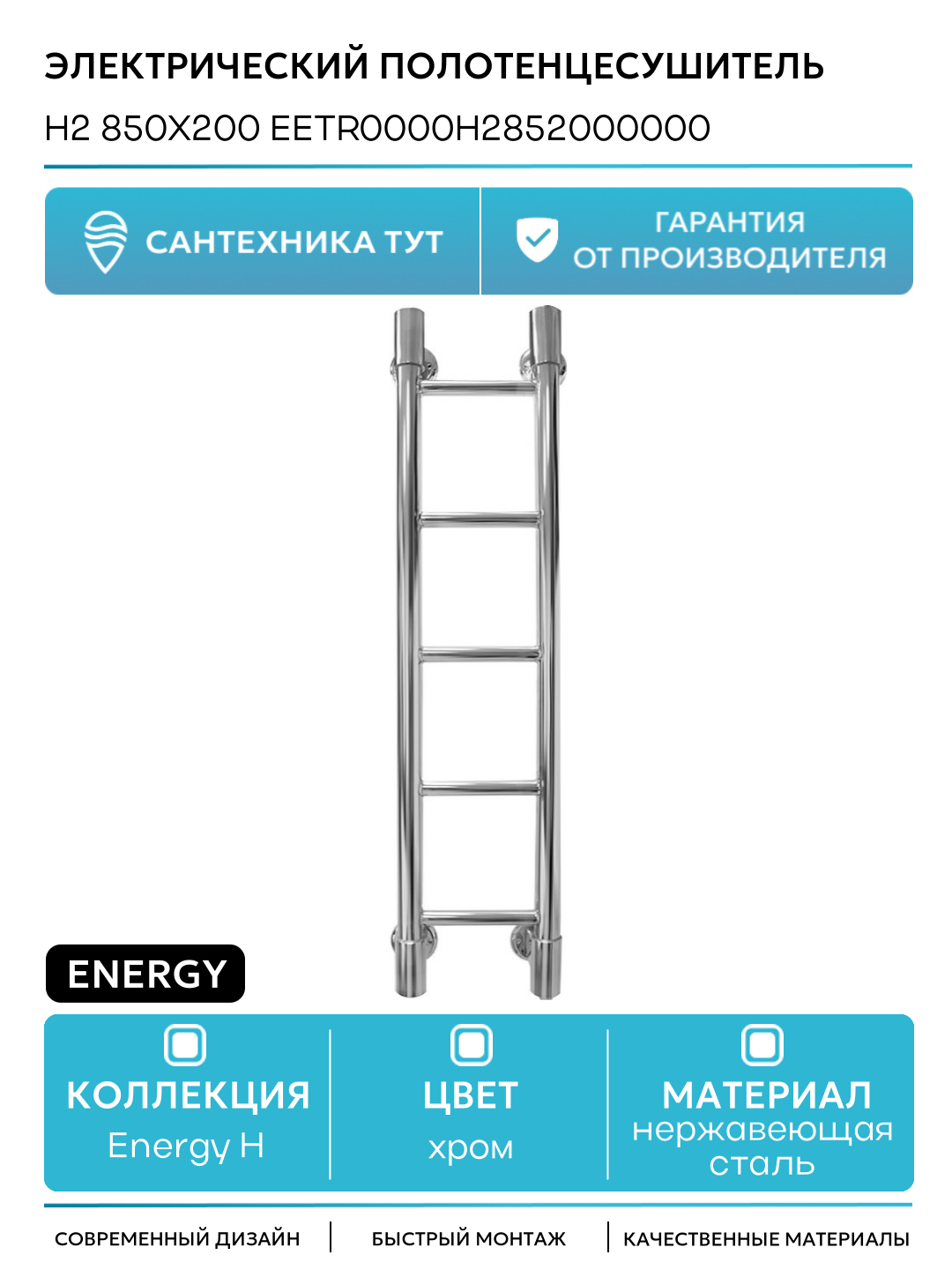 Электрический полотенцесушитель Energy H2 850×200 EETR0000H2852000000 Хром нержавеющая сталь: сравнение цен, характеристики, фото, актуальное наличие и цены.
