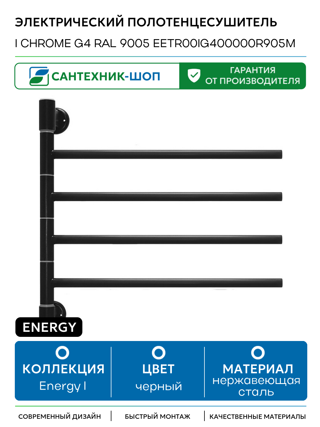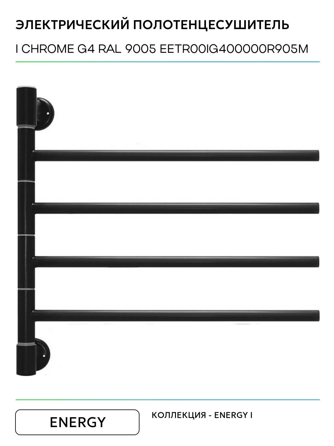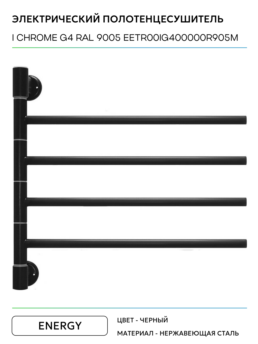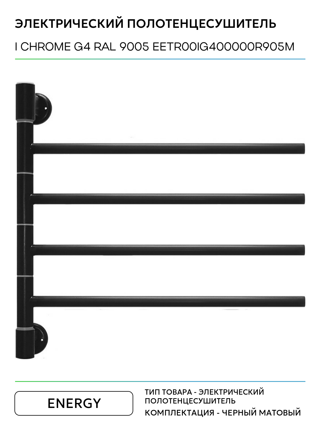Электрический полотенцесушитель Energy I chrome G4 RAL 9005 EETR00IG400000R905M Черный матовый нержавеющая сталь: сравнение цен, характеристики, фото, актуальное наличие и цены.