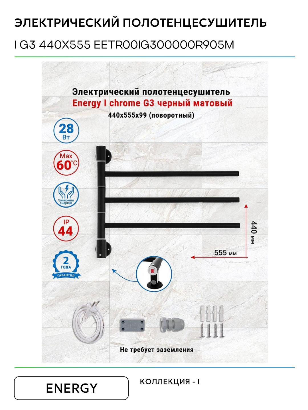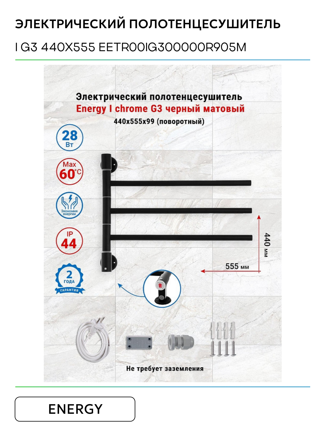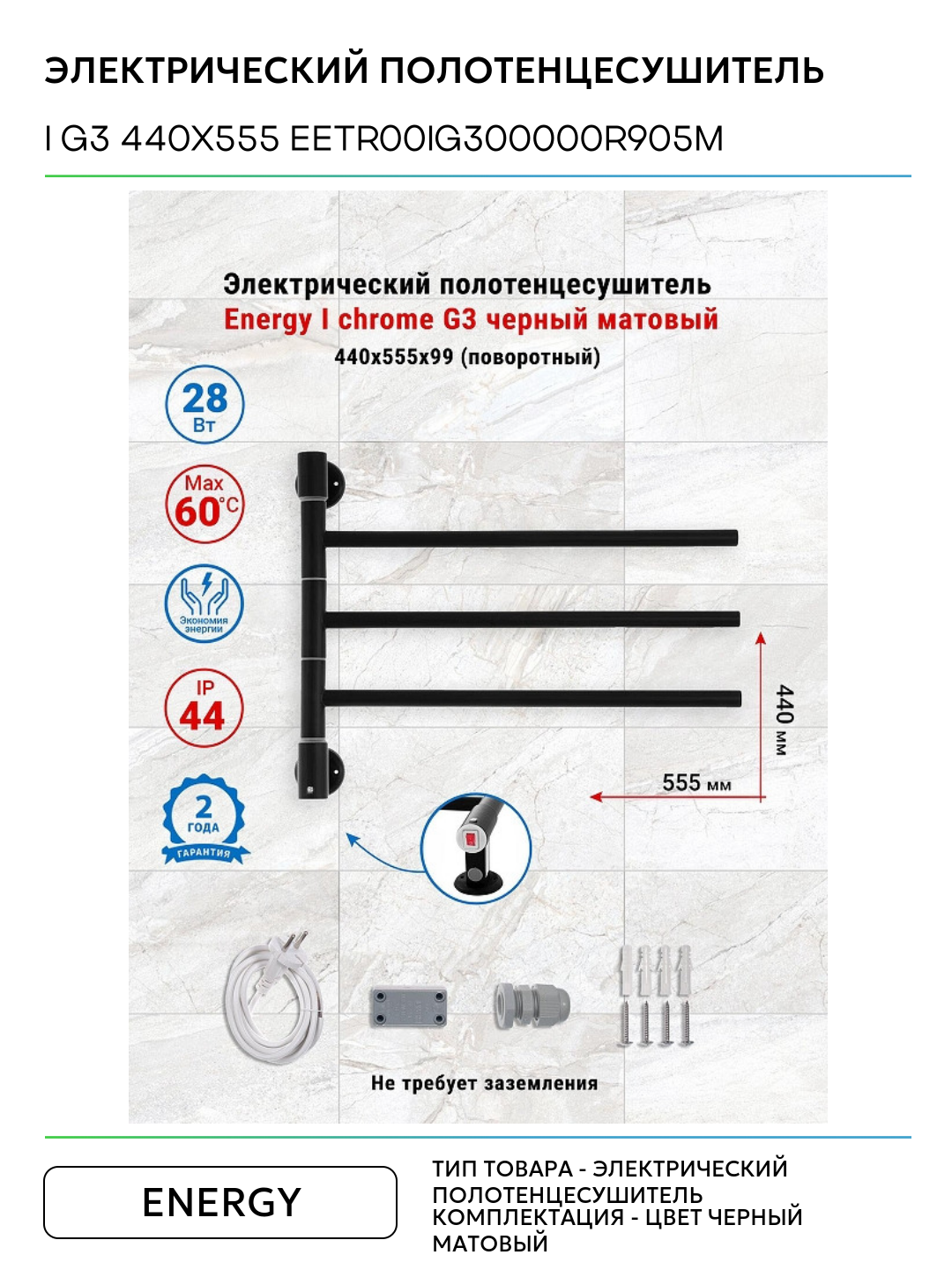 Купить Электрический полотенцесушитель Energy I G3 440х555 EETR00IG300000R905M цвет Черный матовый с доставкой по всей России.