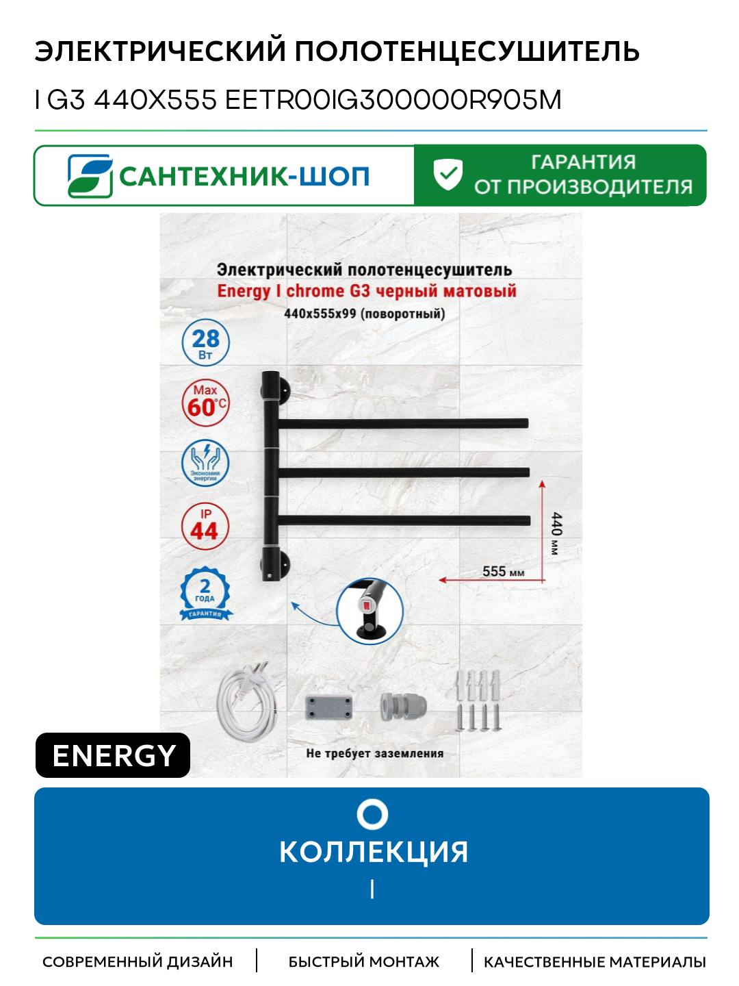 Электрический полотенцесушитель Energy I G3 440х555 EETR00IG300000R905M цвет Черный матовый: сравнение цен, характеристики, фото, актуальное наличие и цены.