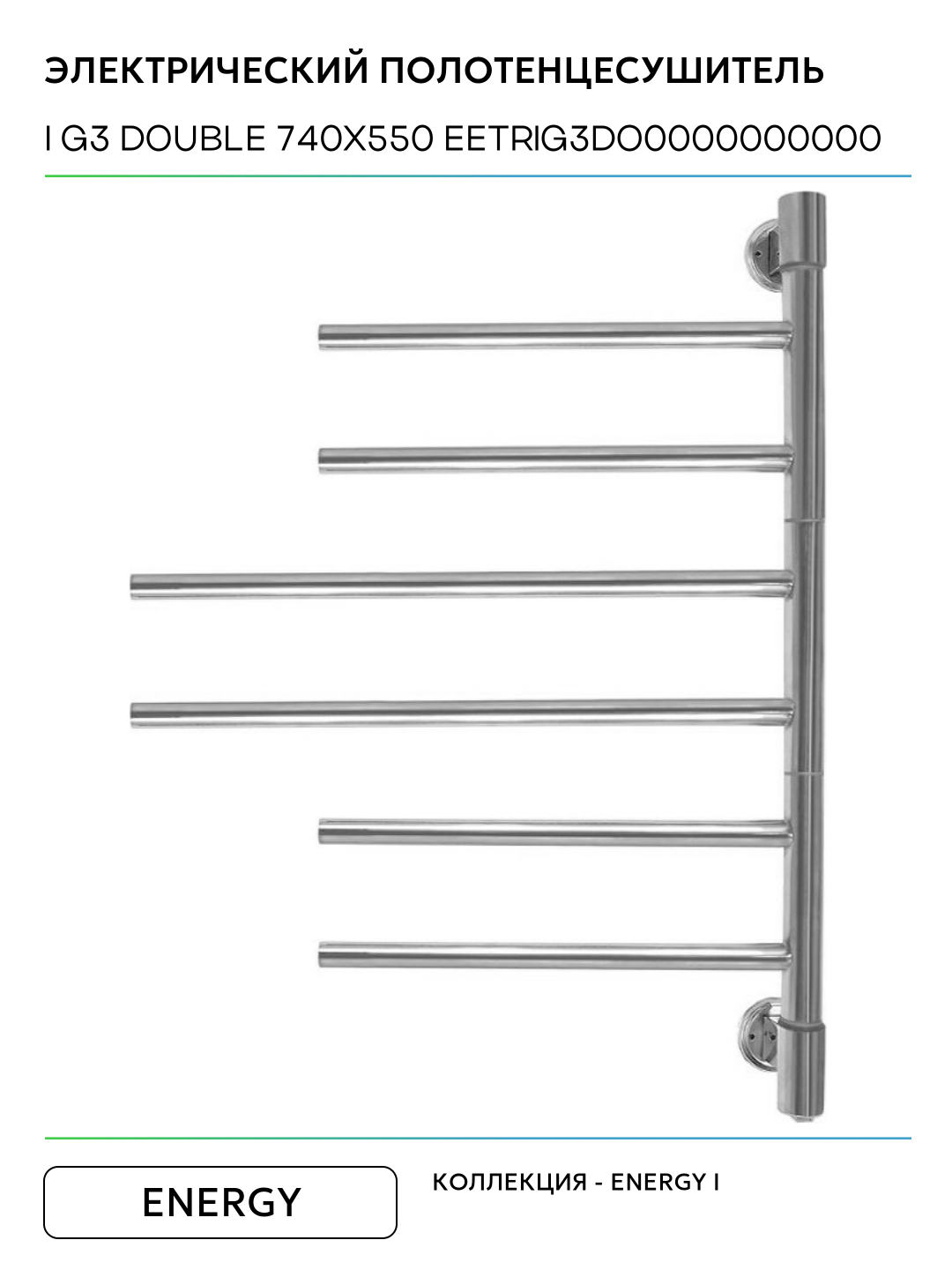Купить Электрический полотенцесушитель Energy I G3 Double 740×550 EETRIG3DO0000000000 Хром нержавеющая сталь с доставкой по всей России.