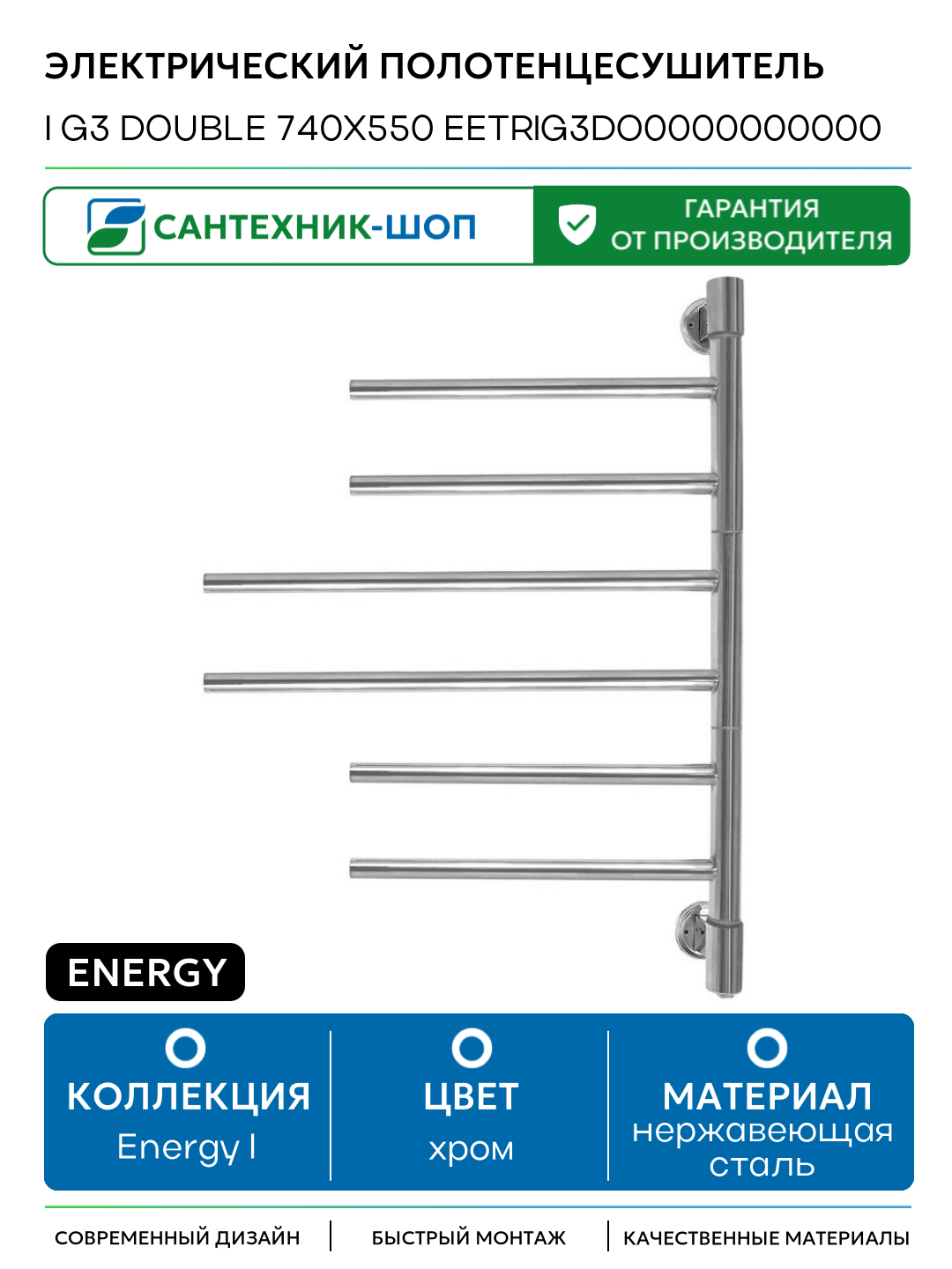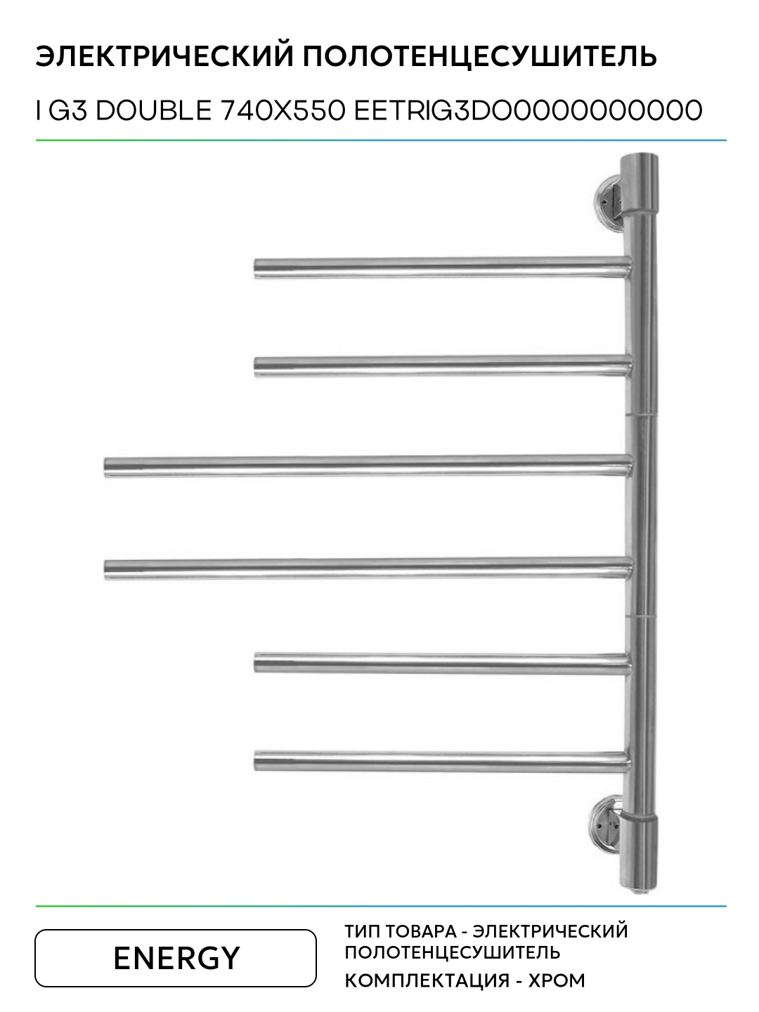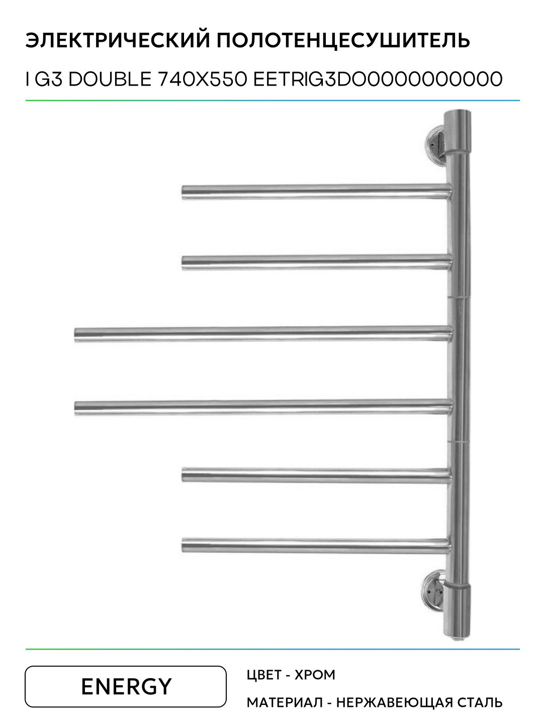 Электрический полотенцесушитель Energy I G3 Double 740×550 EETRIG3DO0000000000 Хром нержавеющая сталь: сравнение цен, характеристики, фото, актуальное наличие и цены.
