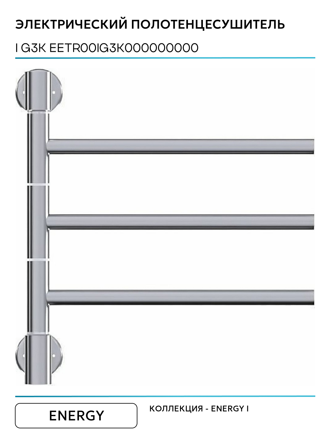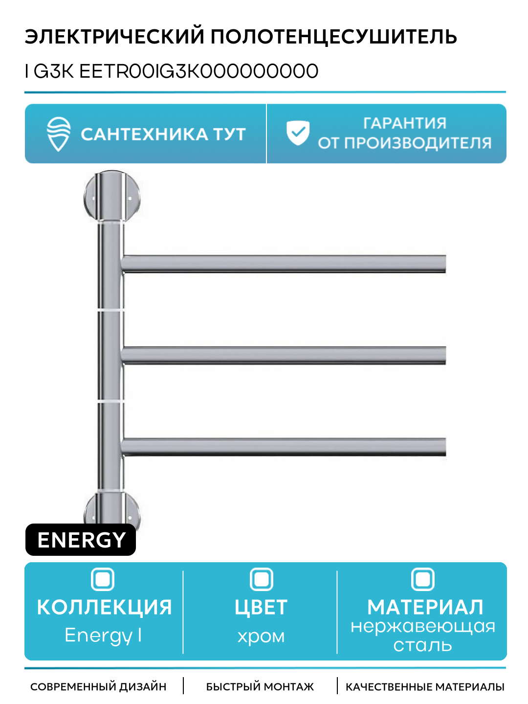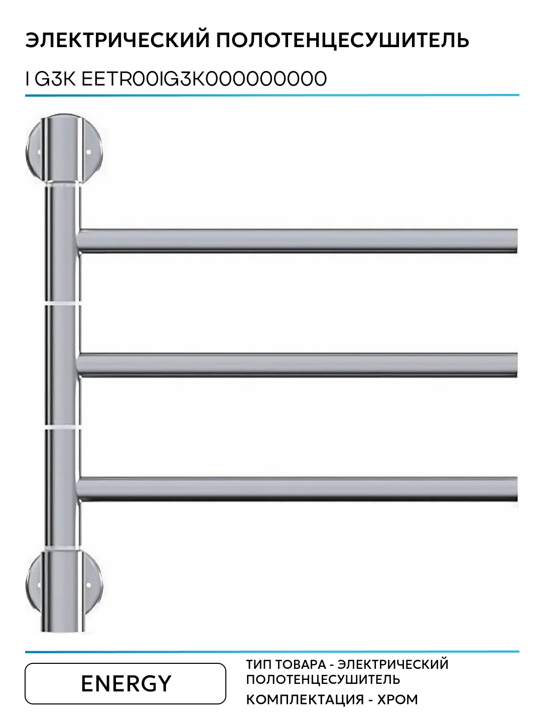 Электрический полотенцесушитель Energy I G3K EETR00IG3K000000000 Хром нержавеющая сталь: сравнение цен, характеристики, фото, актуальное наличие и цены.