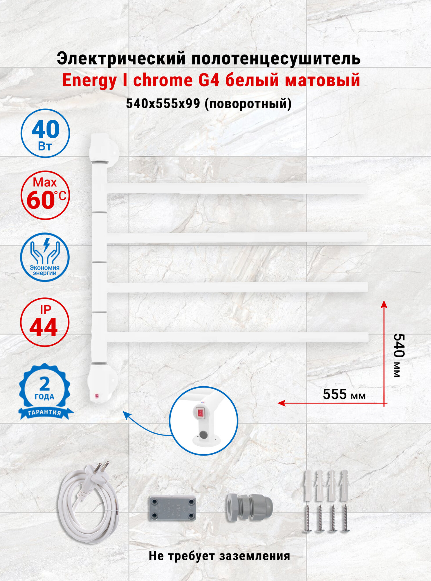 | Подключение | скрытое электрическое соединение, электропровод с вилкой |