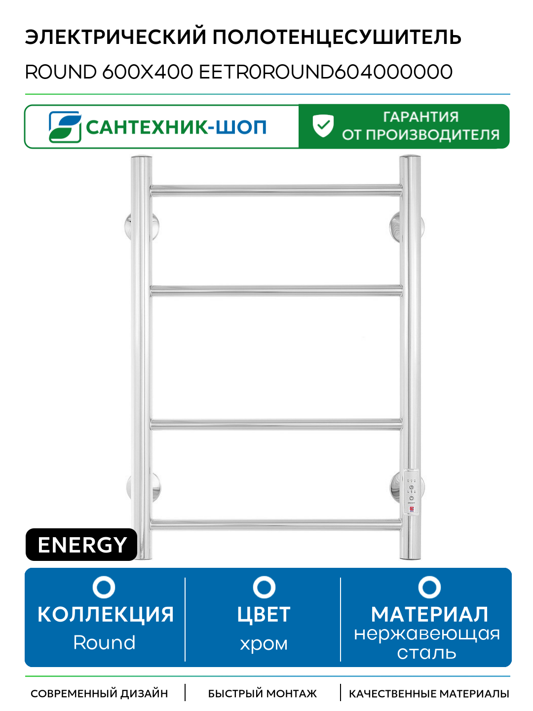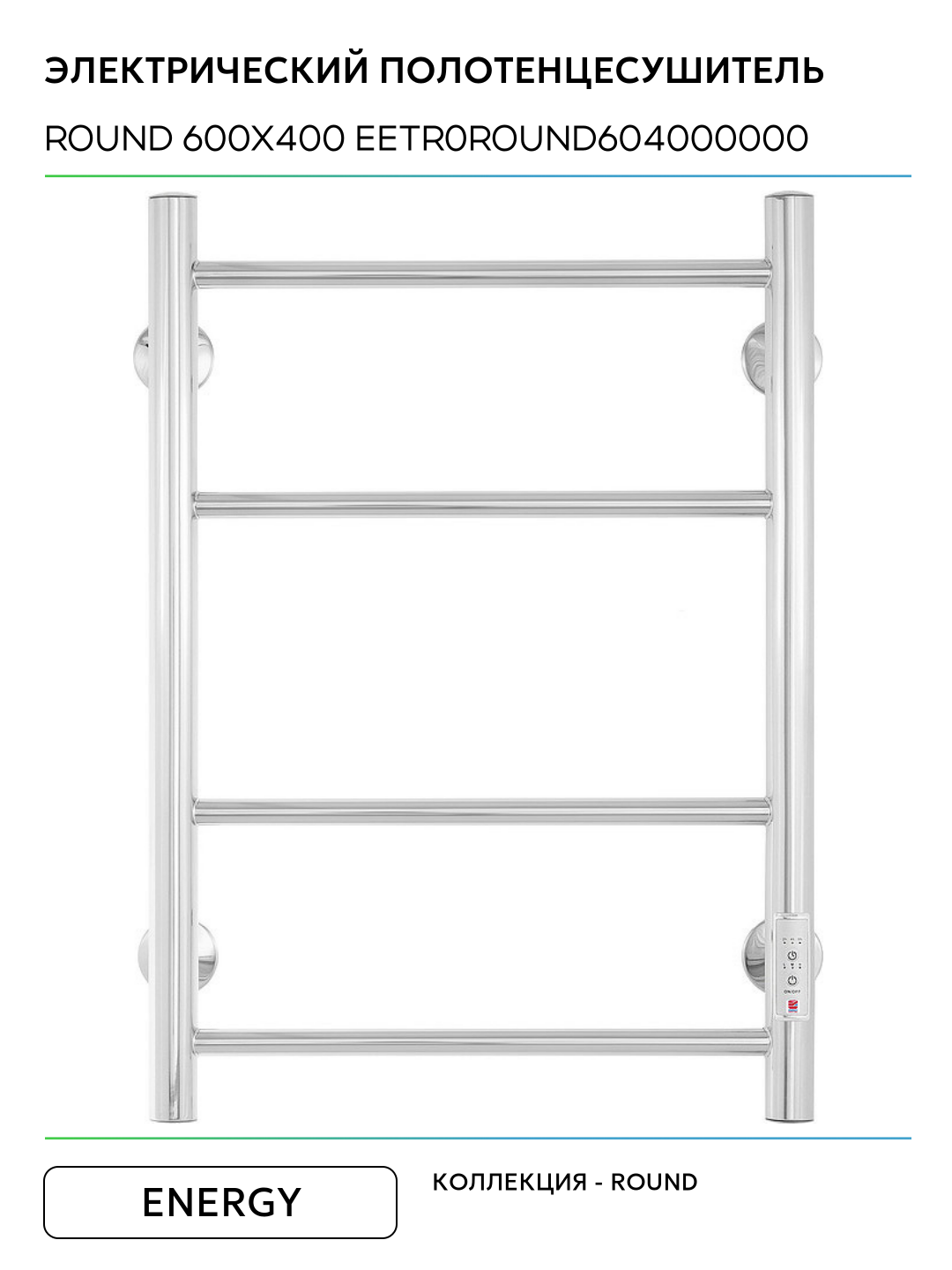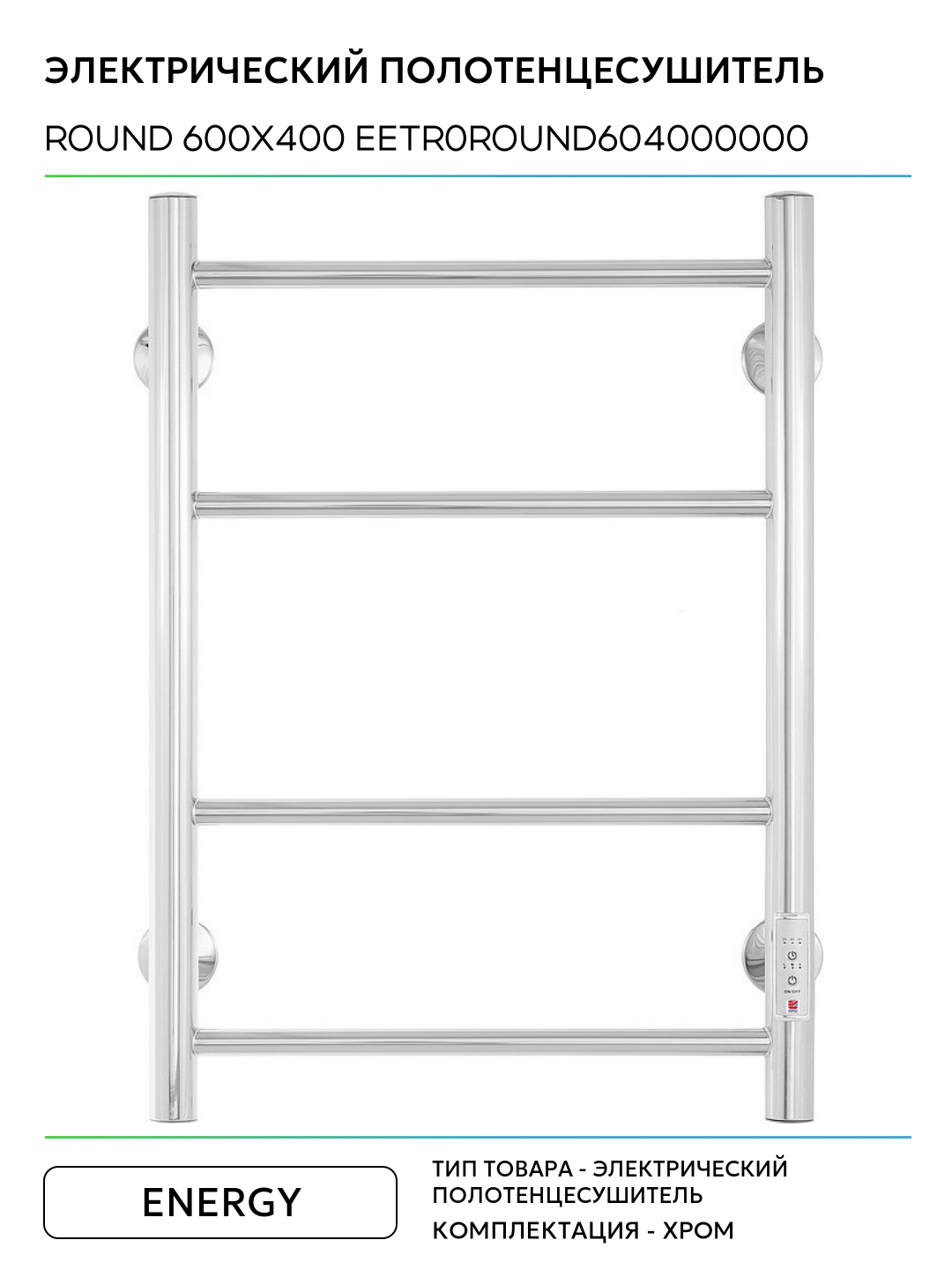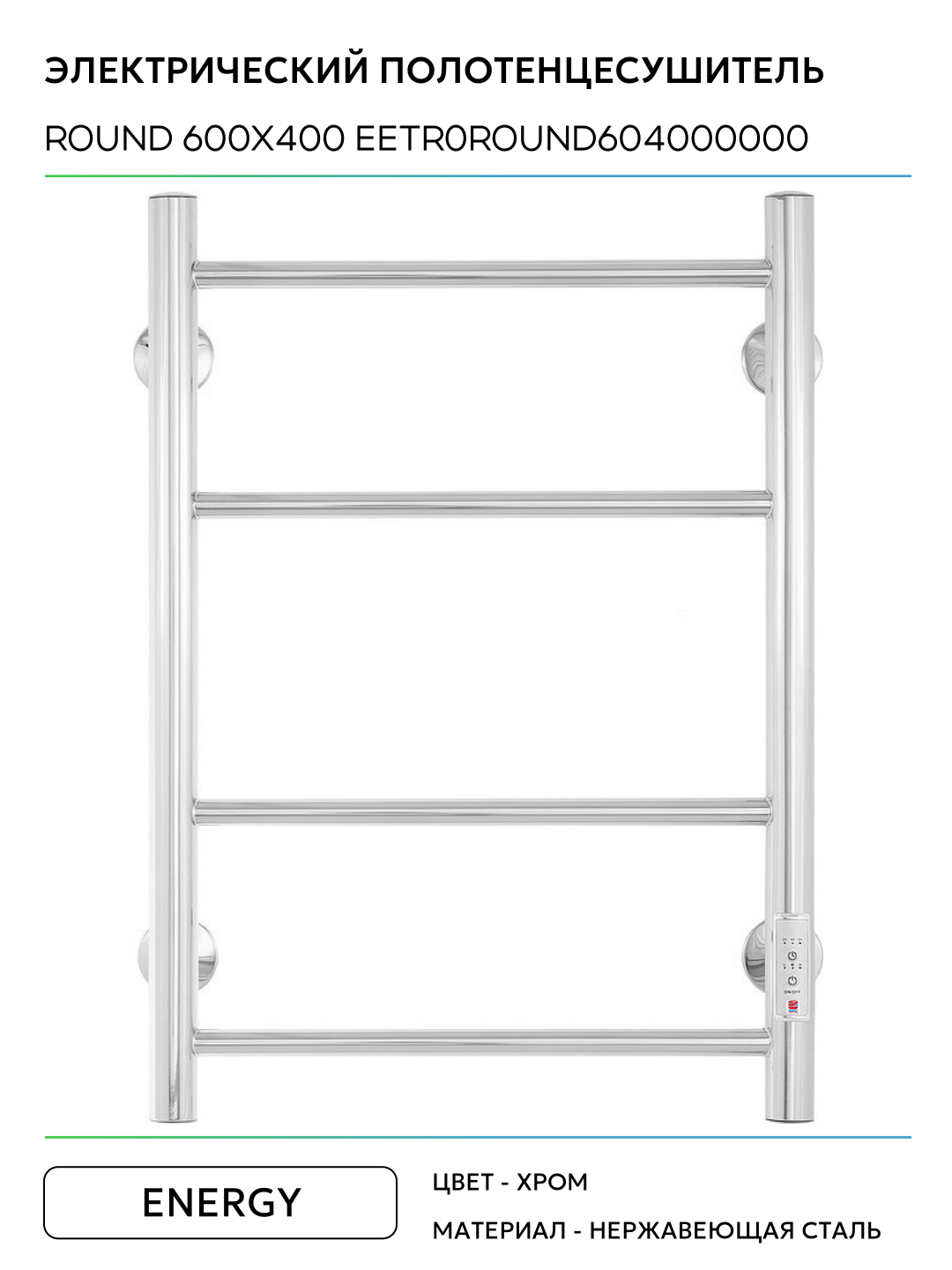 Купить Электрический полотенцесушитель Energy Round 600×400 EETR0ROUND604000000 Хром нержавеющая сталь с доставкой по всей России.
