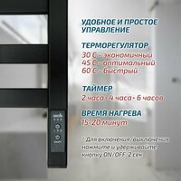 | Дополнительная информация | сторона подключения: универсальное; комплектация: полотенцесушитель: 1 шт., крепёжные кронштейны: 1 компл., модуль скрытого подключения со съемной кабель-вилкой: 1 компл., ключ шестигранный: 1 шт., паспорт: 1 шт., инструкция: 1 шт. |