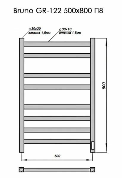 Полотенцесушитель электрический Bruno GR-122 500х800 П8 white U универсальное подключение (левый/правый): сравнение цен, характеристики, фото, актуальное наличие и цены.