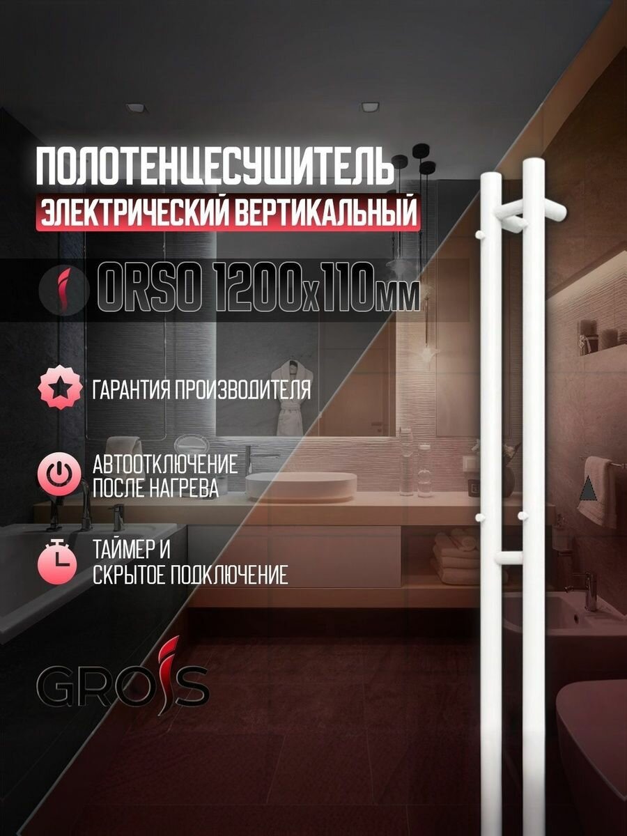 Электрический полотенцесушитель Grois Orso GR-134 11/120 П3 9016 R диммер справа Белый матовый нержавеющая сталь: сравнение цен, характеристики, фото, актуальное наличие и цены.
