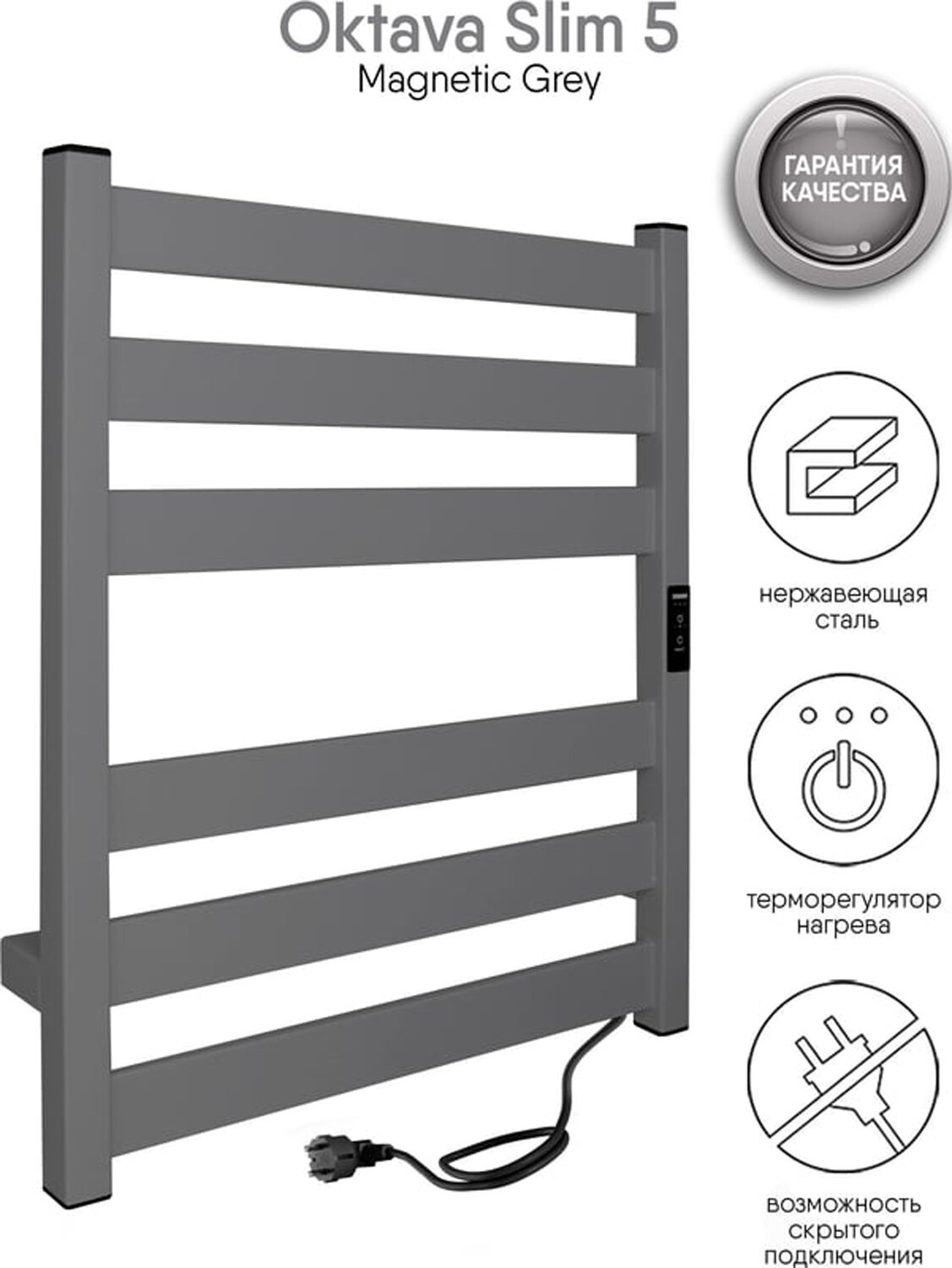 Купить Электрический полотенцесушитель Indigo Oktava Slim 5, без полки, Magnetic Grey (LСLOKS5E60-50MGRt) с доставкой по всей России.