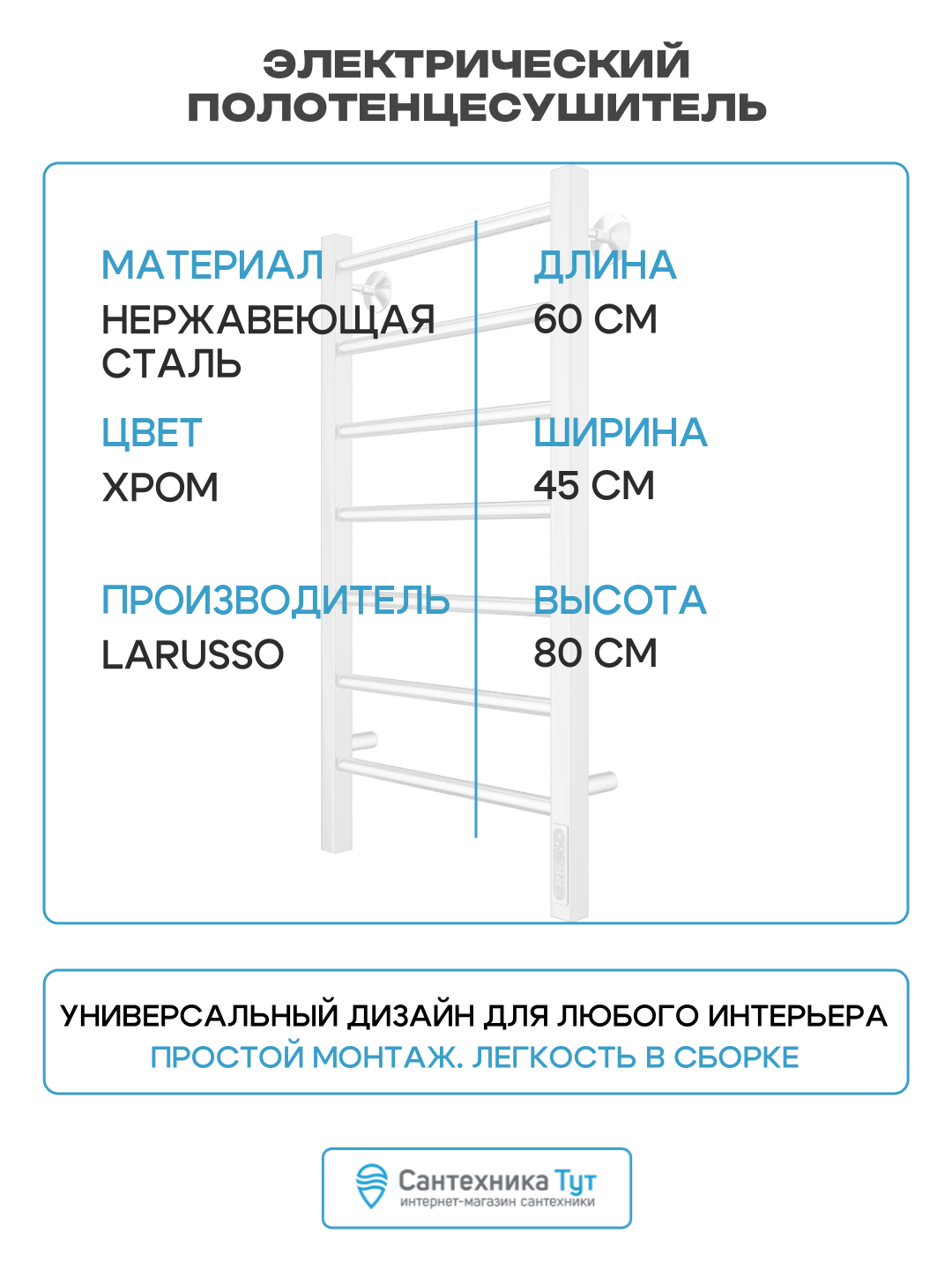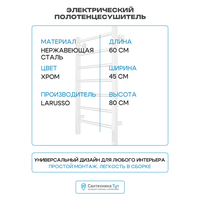 | Дополнительная информация | Полотенцесушитель-1 шт. Кабель с вилкой- 1 шт. Комплект креплений-1 шт. Паспорт - 1 шт. |