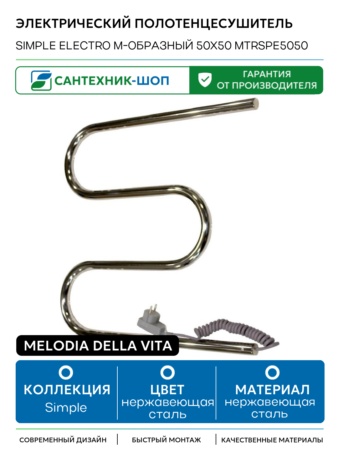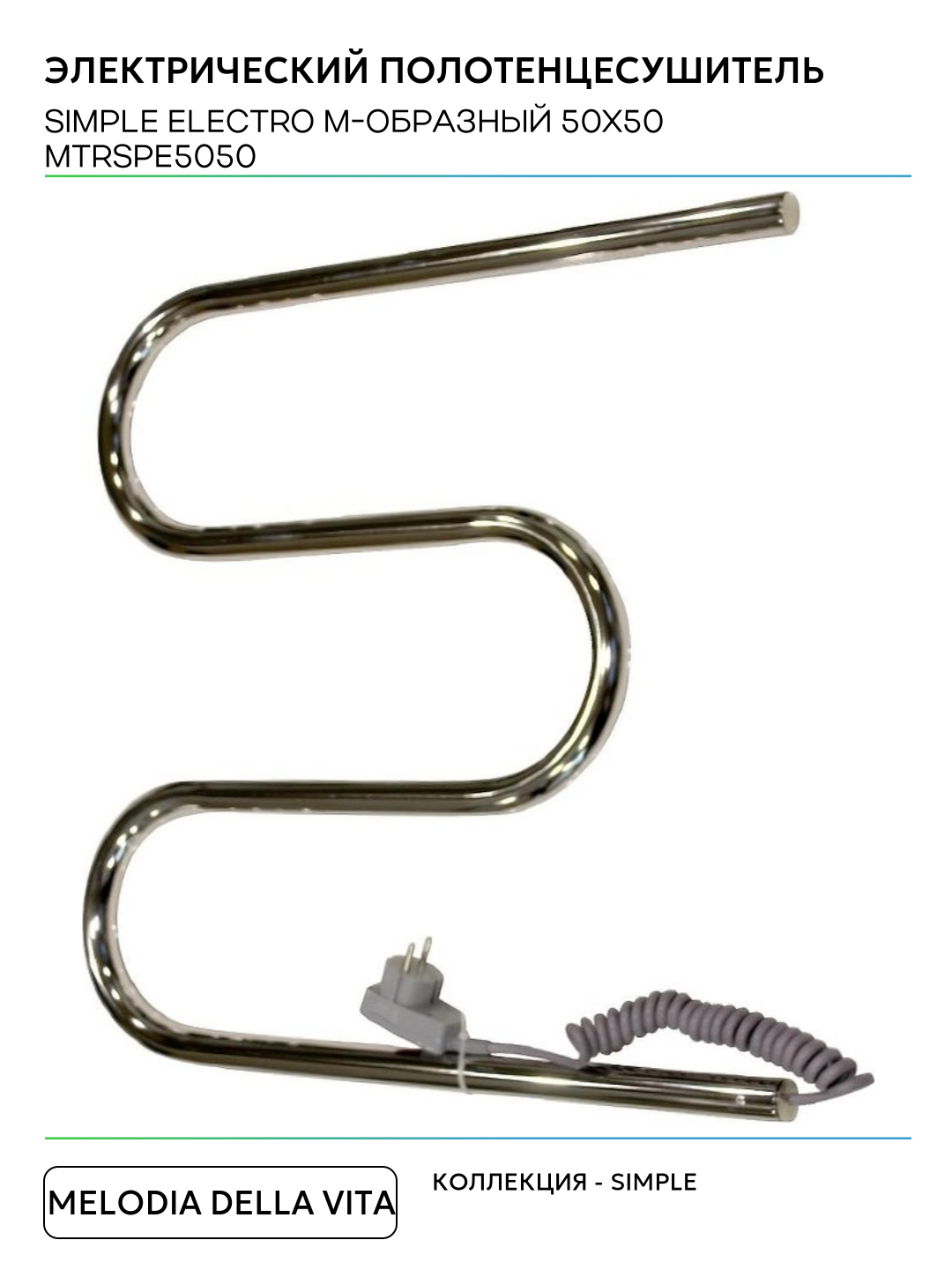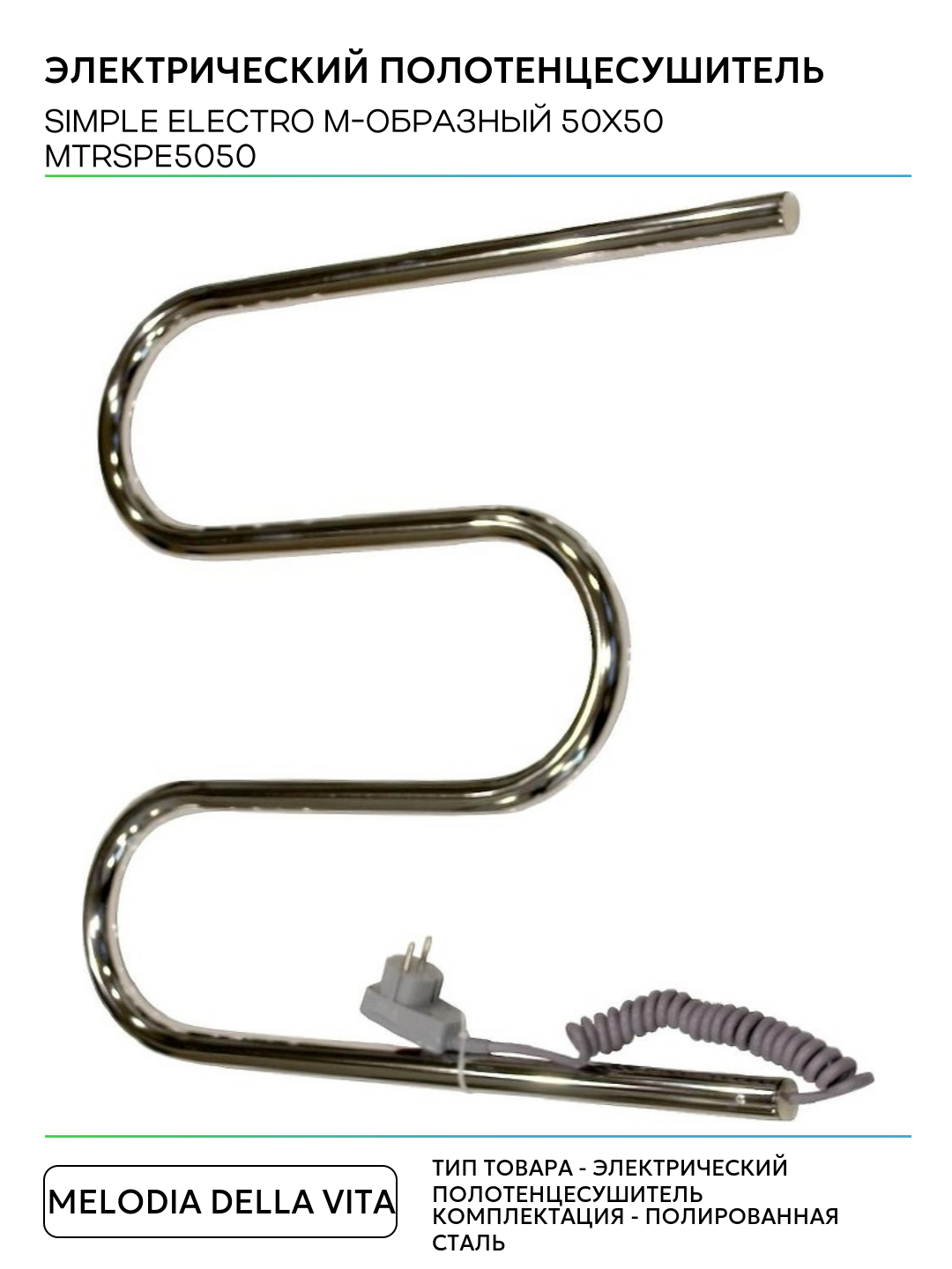 Электрический полотенцесушитель Melodia della vita Simple Electro М-образный 50х50 MTRSPE5050 Полированная сталь: сравнение цен, характеристики, фото, актуальное наличие и цены.