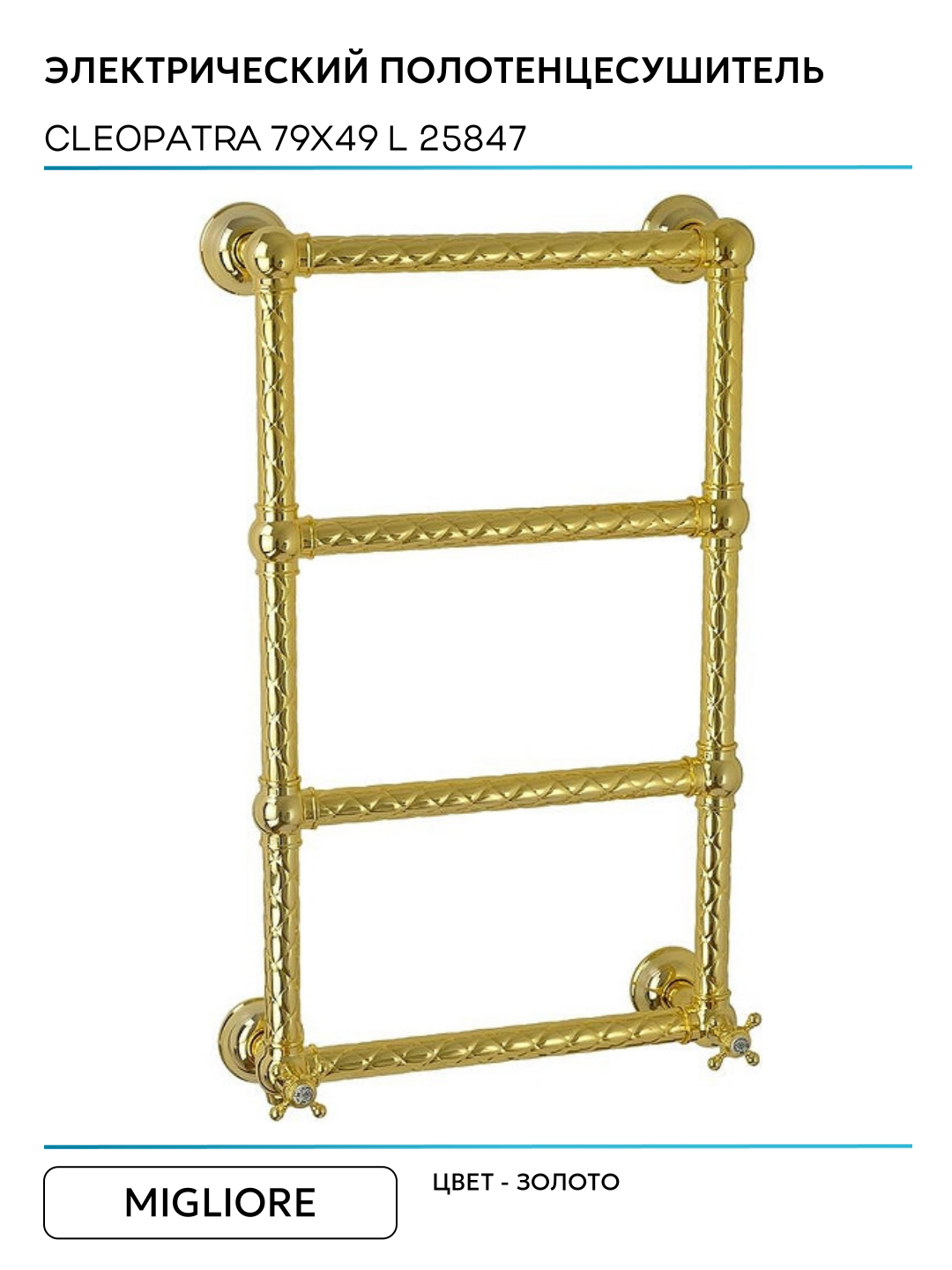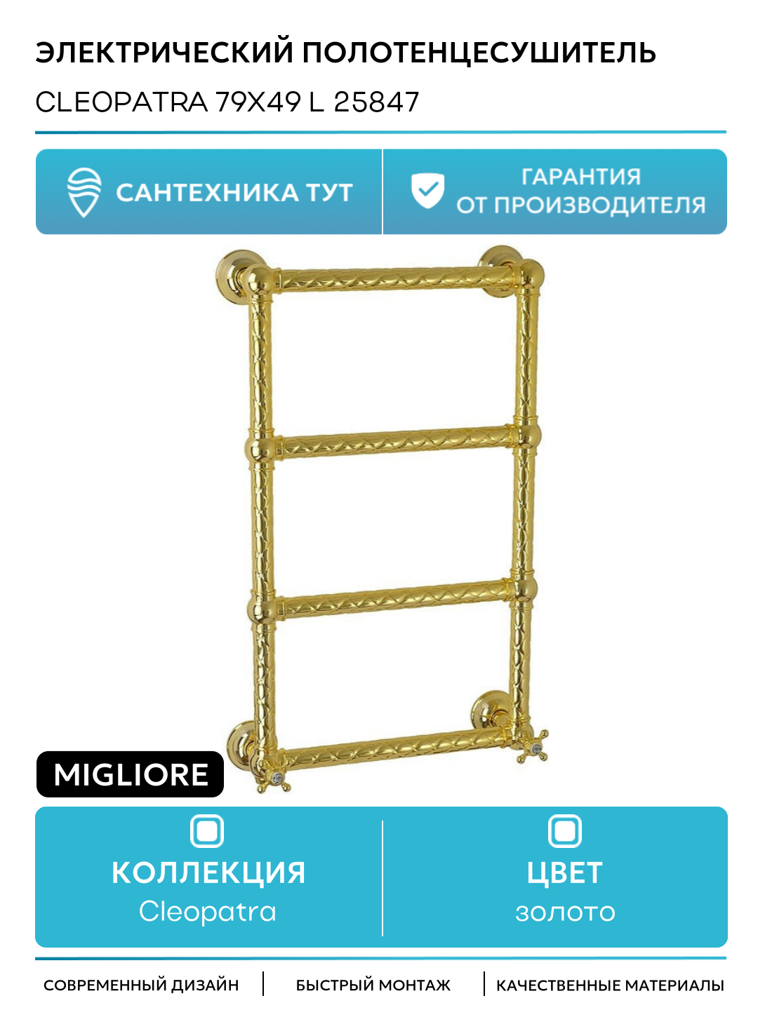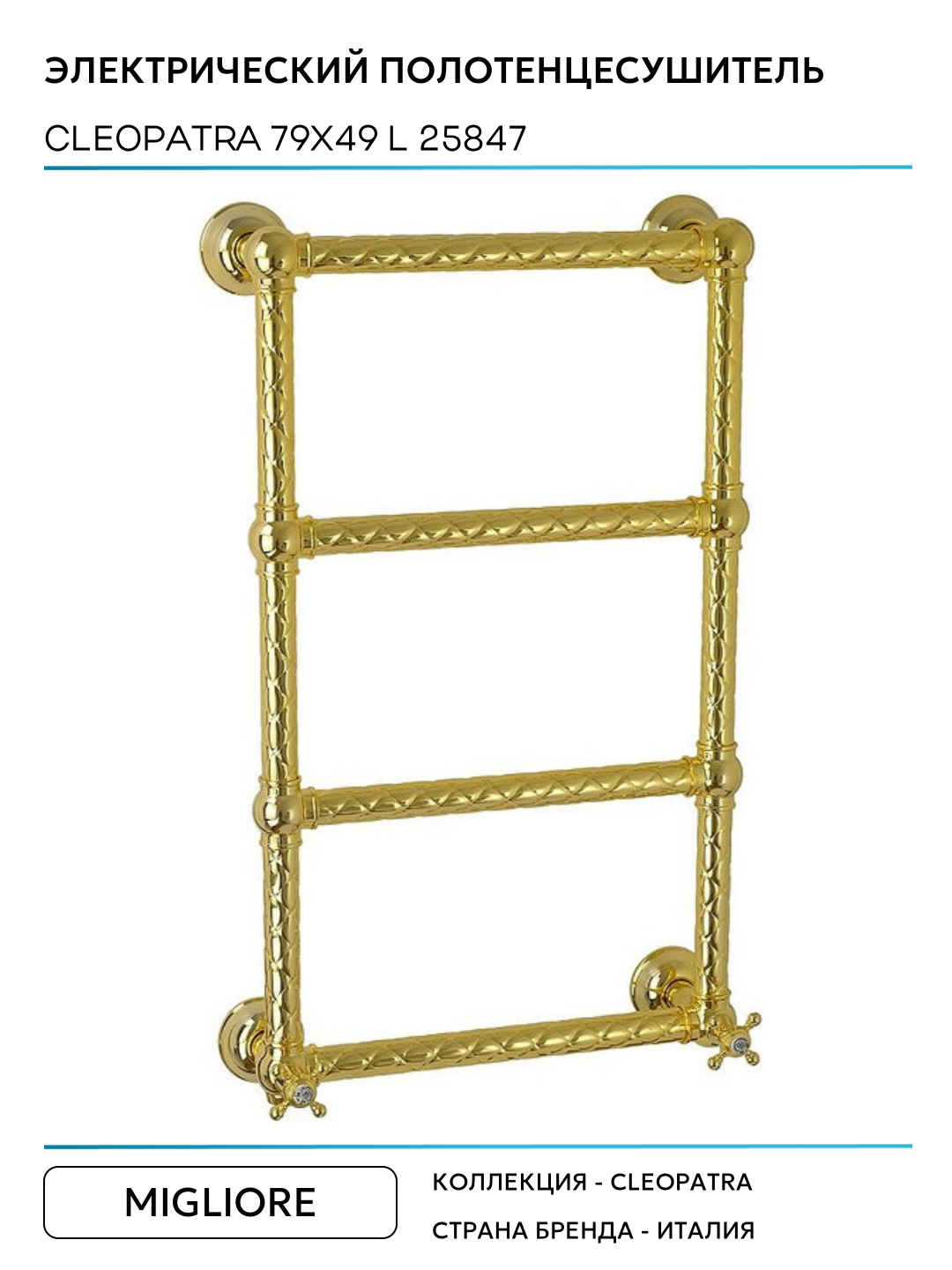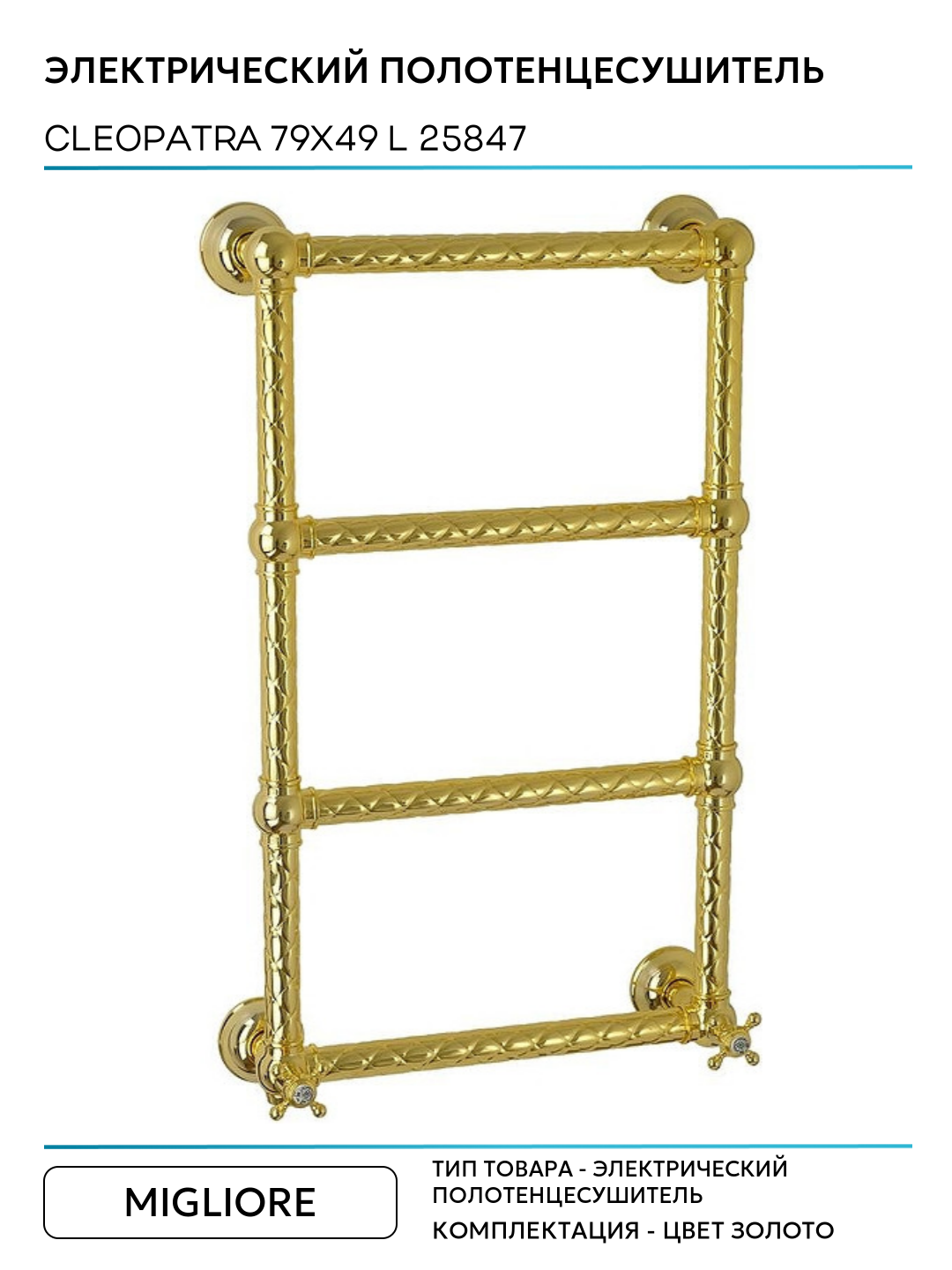 Электрический полотенцесушитель Migliore Cleopatra 79х49 L 25847 цвет Золото: сравнение цен, характеристики, фото, актуальное наличие и цены.