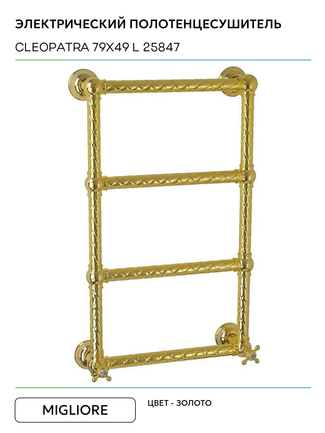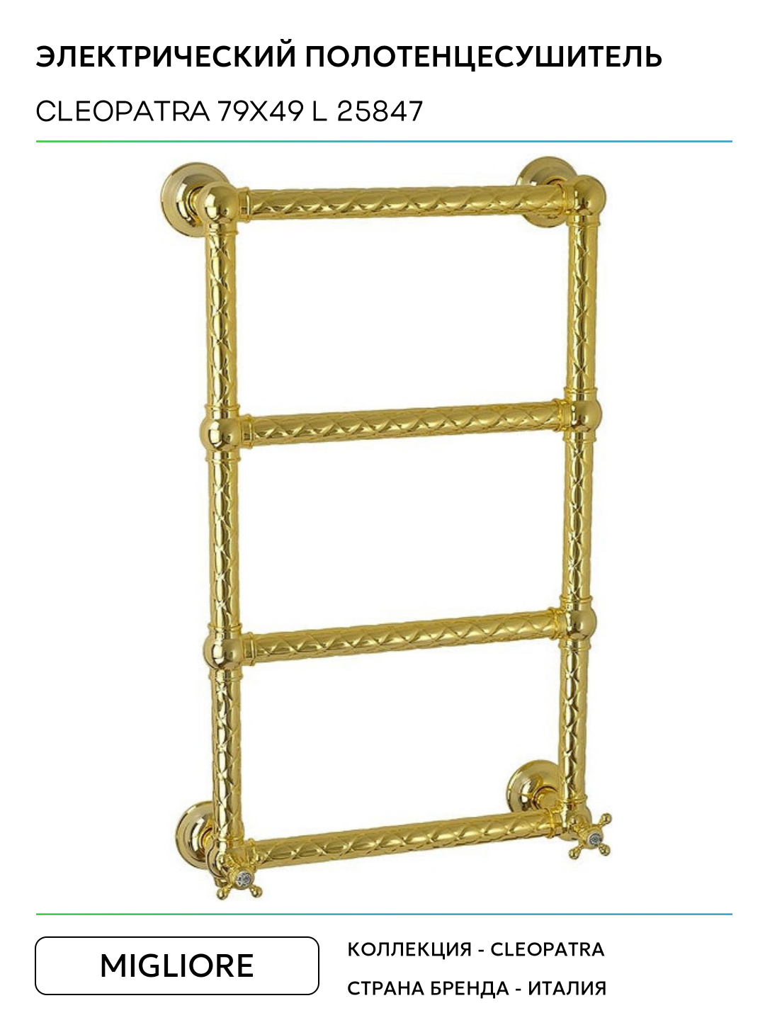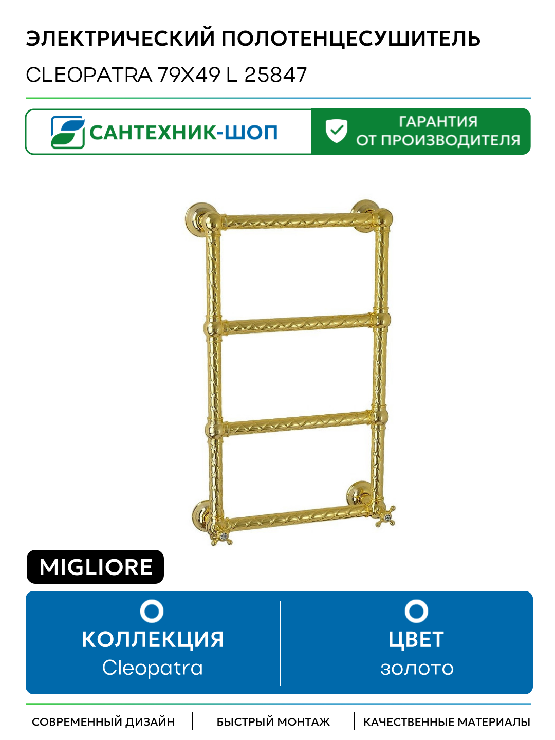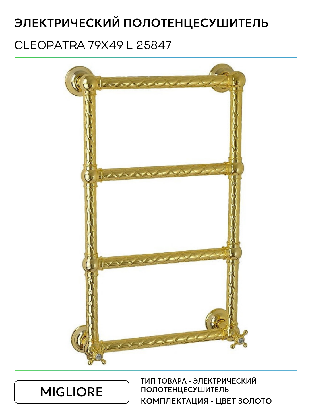 Электрический полотенцесушитель Migliore Cleopatra 79х49 L 25847 цвет Золото Италия: сравнение цен, характеристики, фото, актуальное наличие и цены.