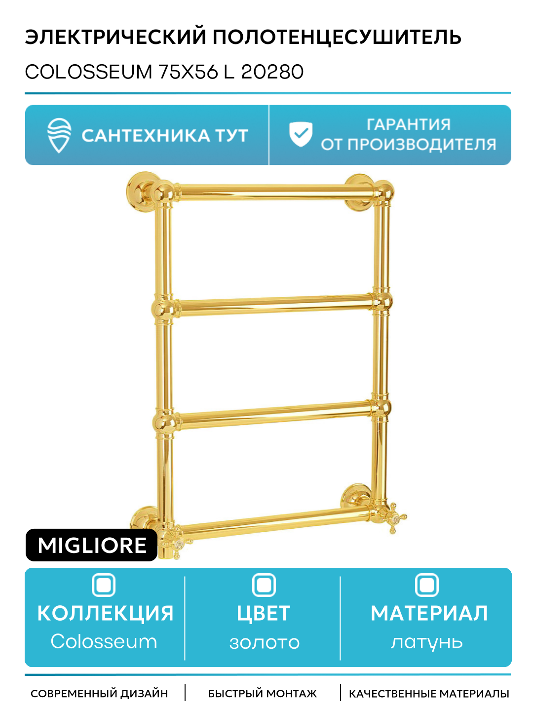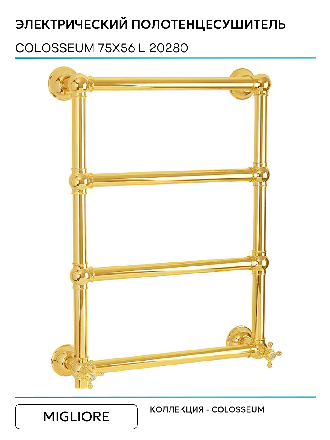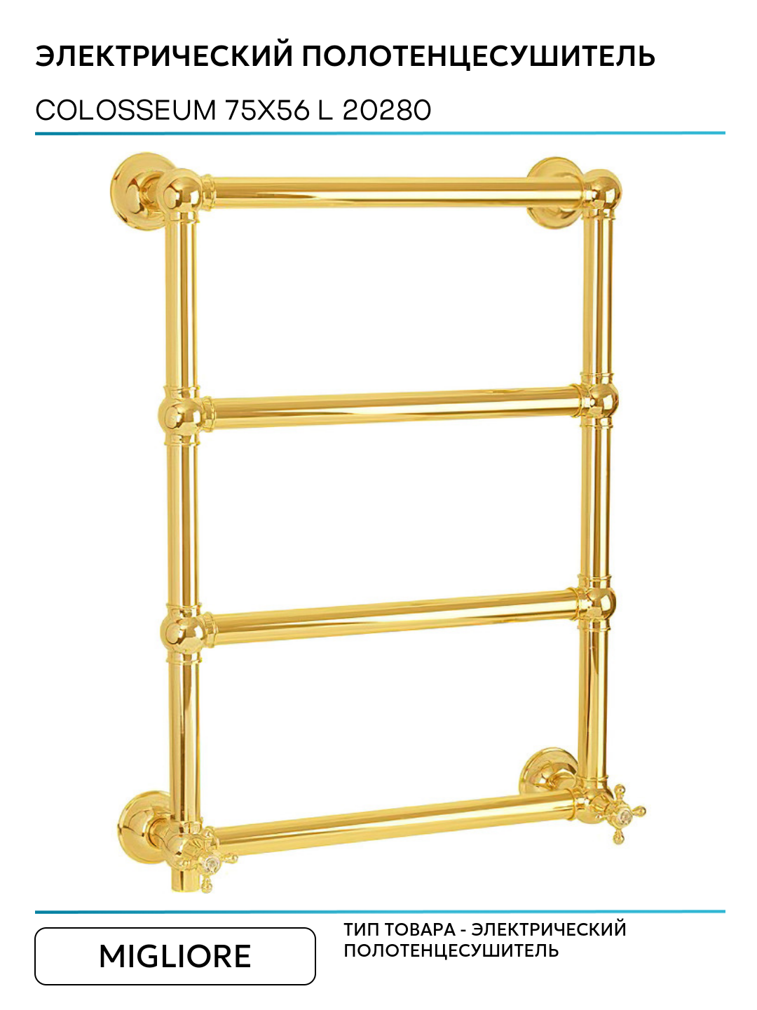 Купить Электрический полотенцесушитель Migliore Colosseum 75×56 L 20280 Золото с доставкой по всей России. Электрический полотенцесушитель Migliore Colosseum 75×56 L 20280 Золото: сравнение цен, характеристики, фото, актуальное наличие и цены.