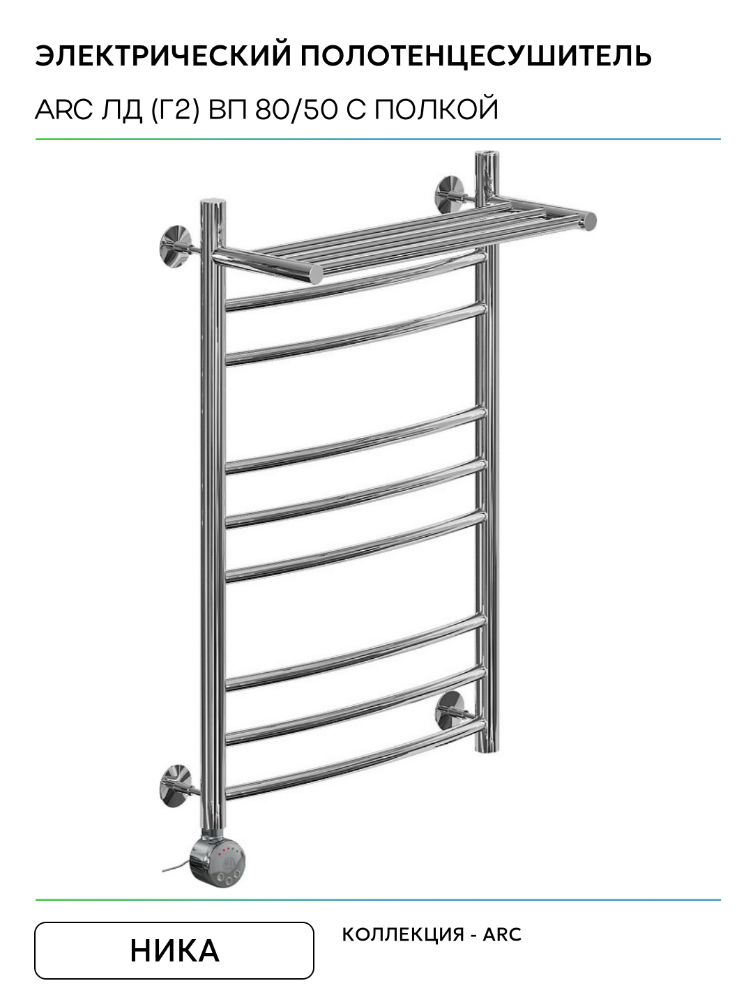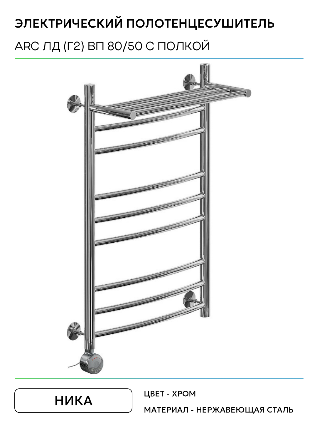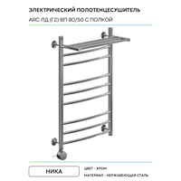 Электрический полотенцесушитель Ника Arc ЛД (Г2) ВП 80/50 с полкой Хром нержавеющая сталь: сравнение цен, характеристики, фото, актуальное наличие и цены.