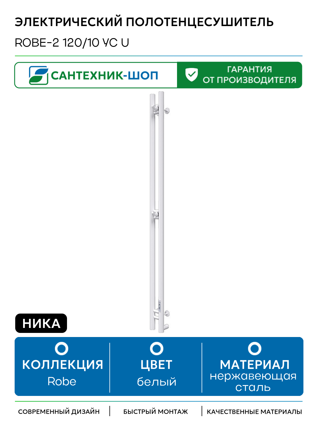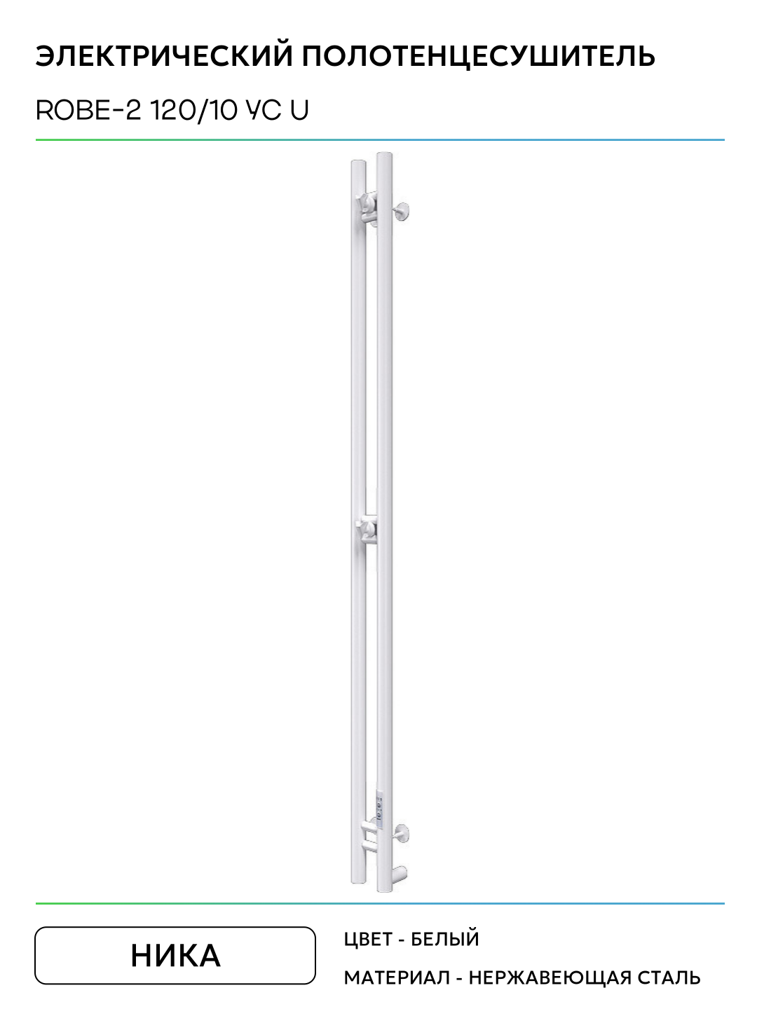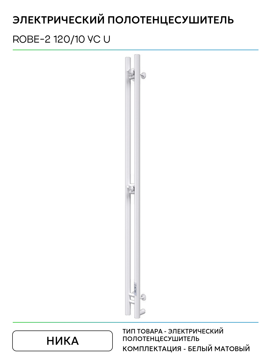 Электрический полотенцесушитель Ника Robe-2 120/10 УС U Белый матовый нержавеющая сталь: сравнение цен, характеристики, фото, актуальное наличие и цены.