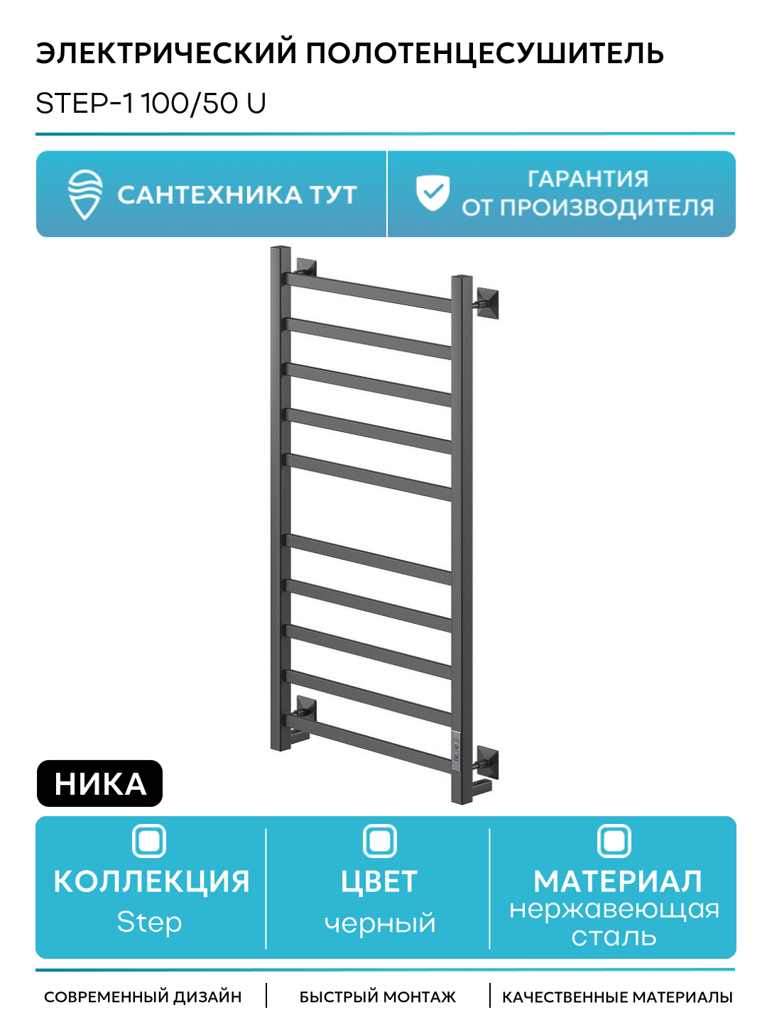 Электрический полотенцесушитель Ника Step-1 100/50 U Черный матовый нержавеющая сталь: сравнение цен, характеристики, фото, актуальное наличие и цены.