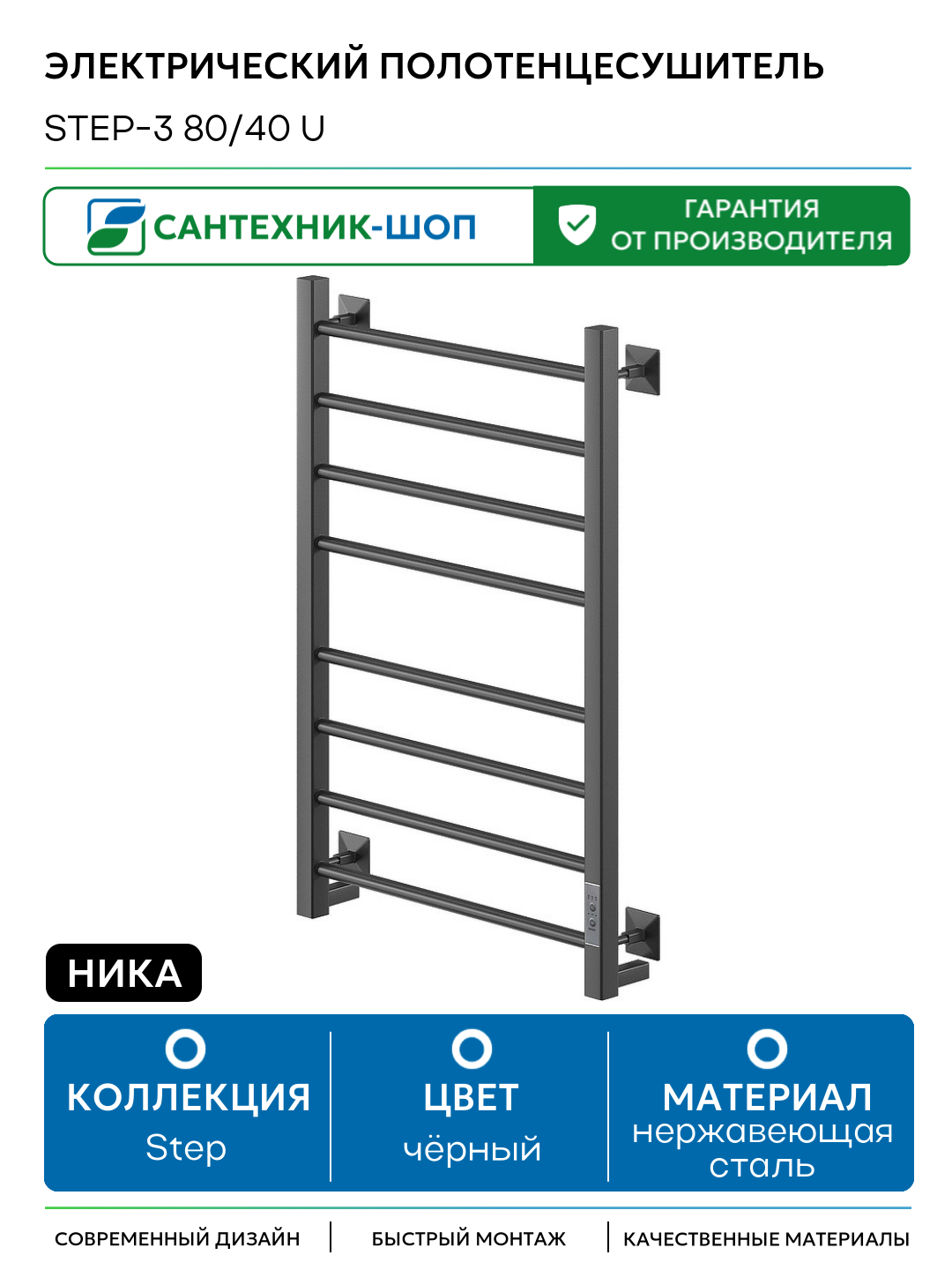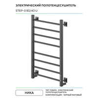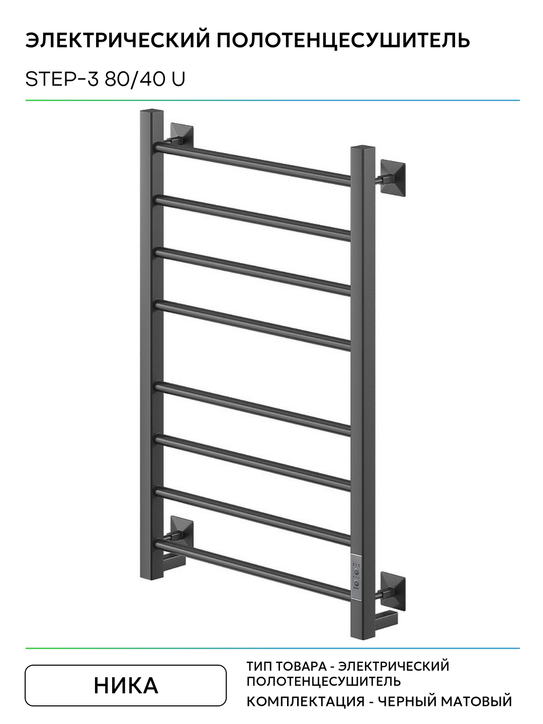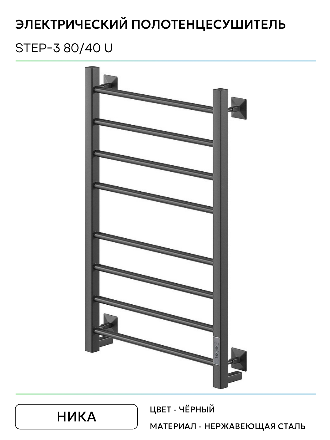 Электрический полотенцесушитель Ника Step-3 80/40 U Черный матовый нержавеющая сталь: сравнение цен, характеристики, фото, актуальное наличие и цены.