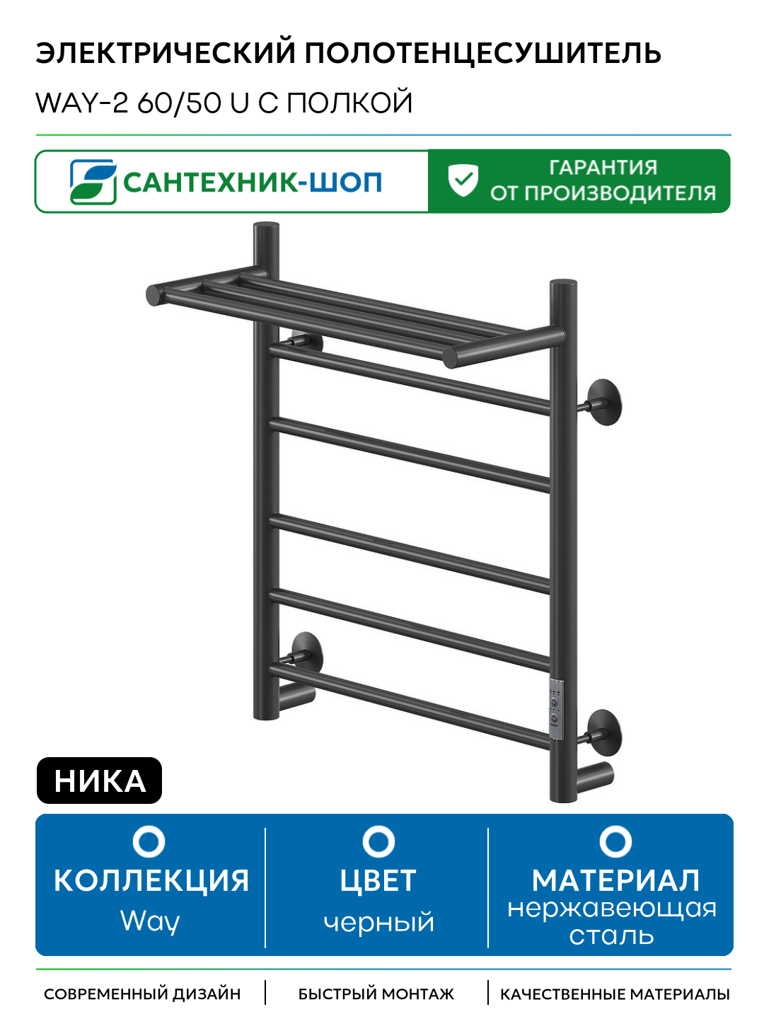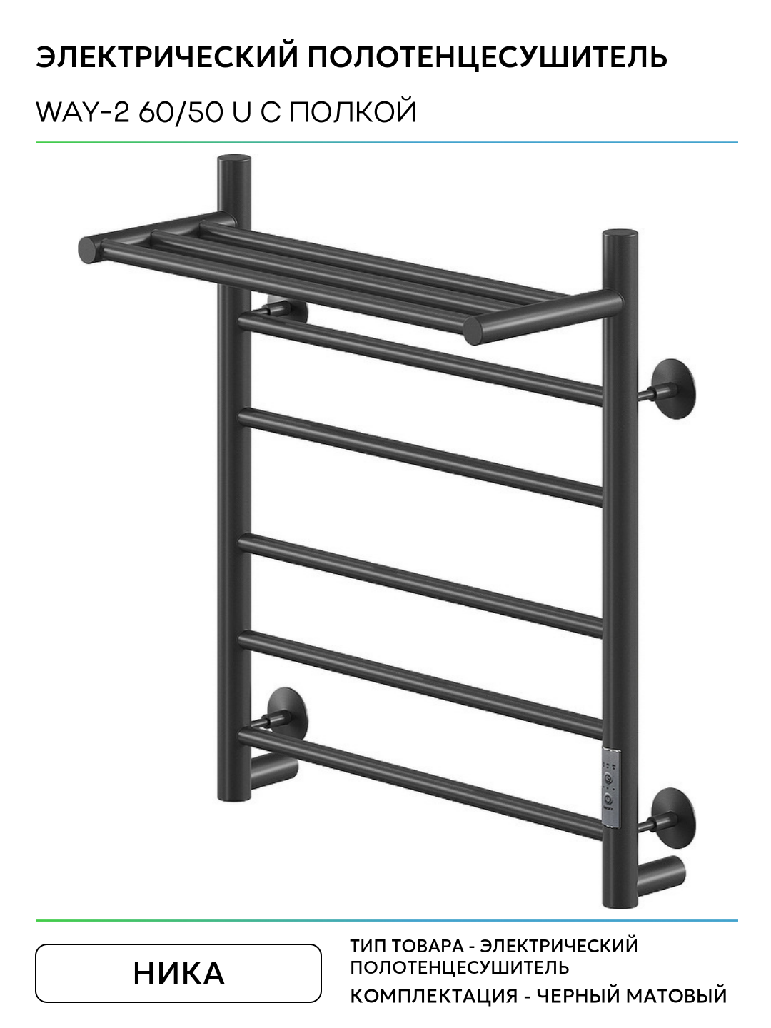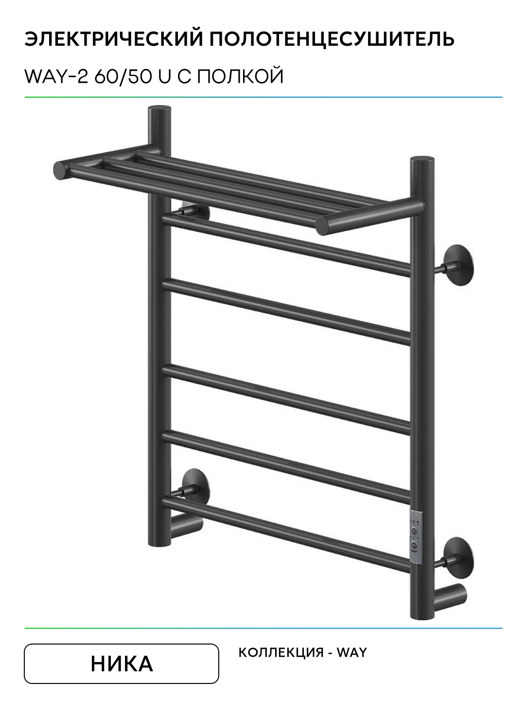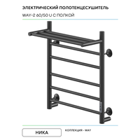 Купить Электрический полотенцесушитель Ника Way-2 60/50 U с полкой Черный матовый нержавеющая сталь с доставкой по всей России.
