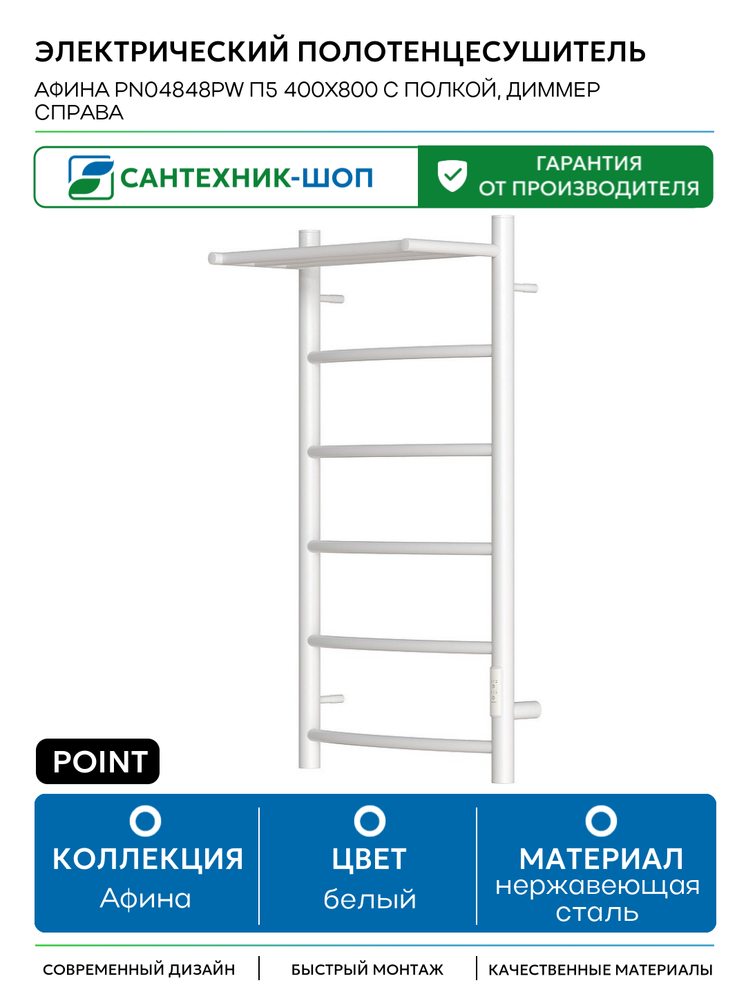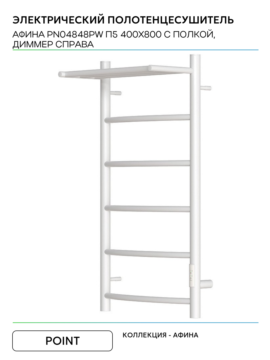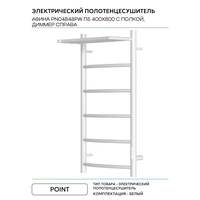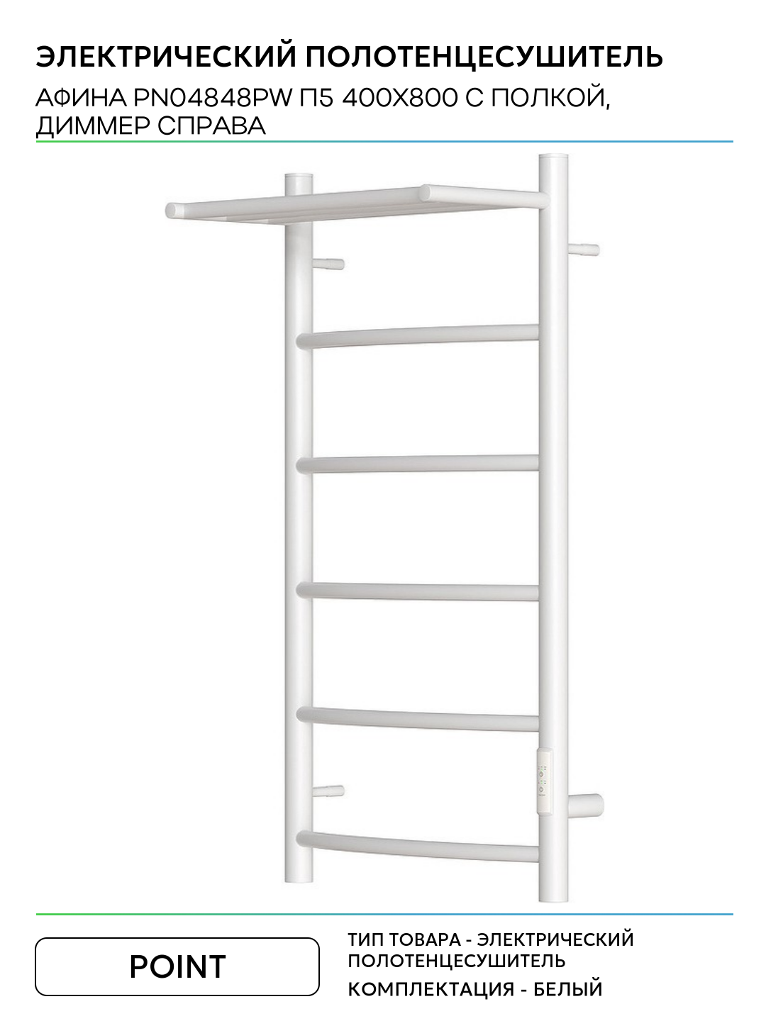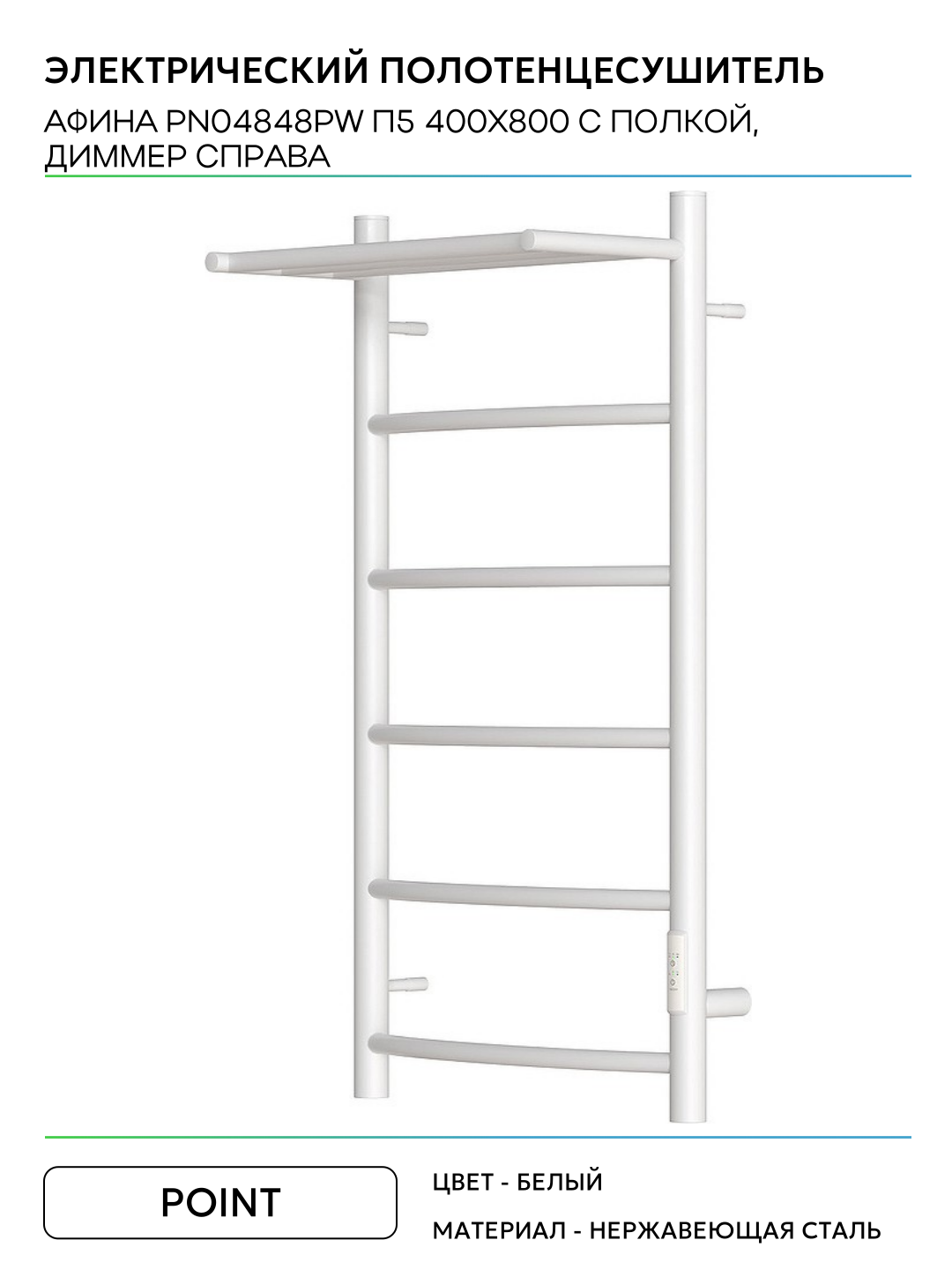 Электрический полотенцесушитель Point Афина PN04848PW П5 400x800 с полкой, диммер справа.