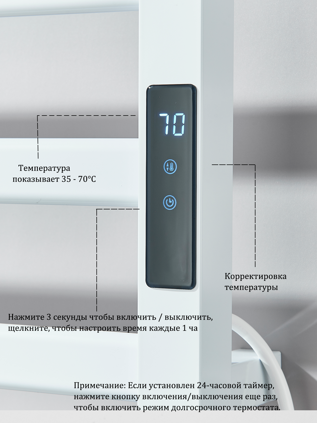 Электрический полотенцесушитель Point Mercury 400×600 мм диммер справа, цифровой температурный сенсорный LED белый