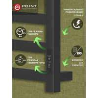 Полотенцесушитель электрический Point Меркурий PN83850B П10 500×1000, диммер справа, черный