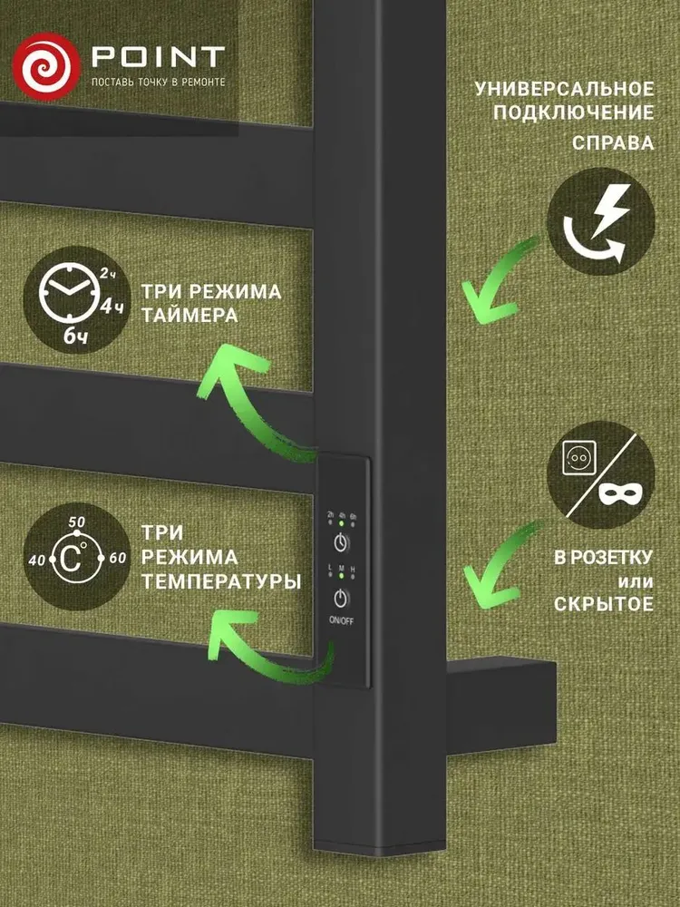 Полотенцесушитель электрический Point Меркурий PN83850B П10 500×1000, диммер справа, черный: сравнение цен, характеристики, фото, актуальное наличие и цены.