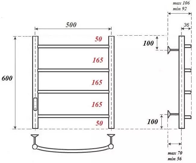 Полотенцесушитель электрический Point Афина PN04756B 50х60, черный: сравнение цен, характеристики, фото, актуальное наличие и цены.