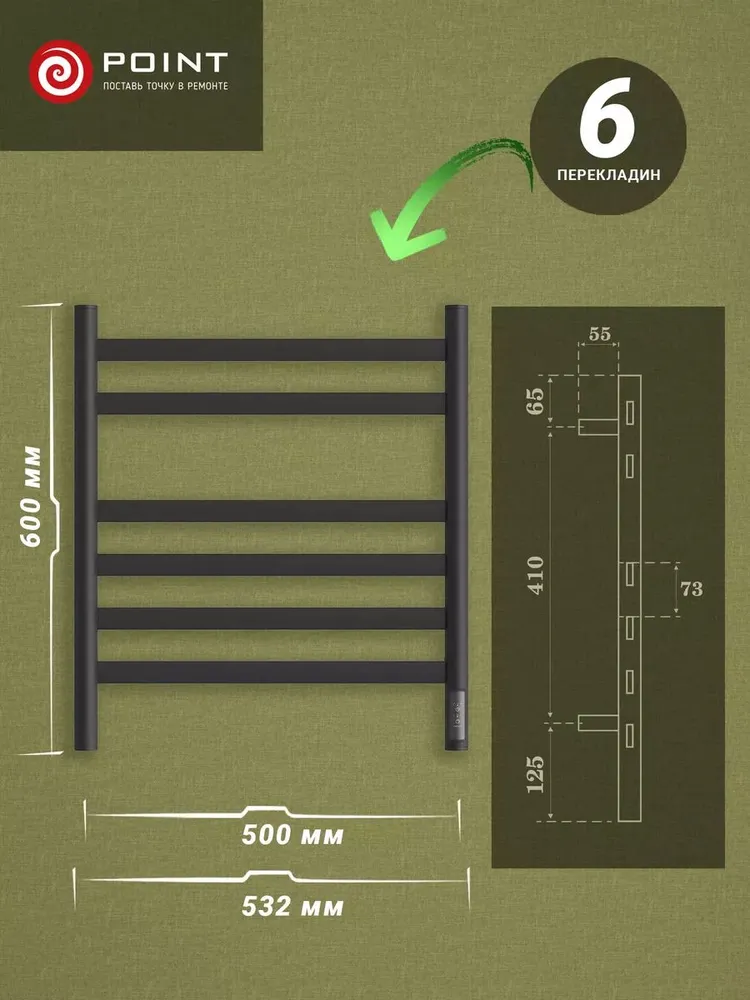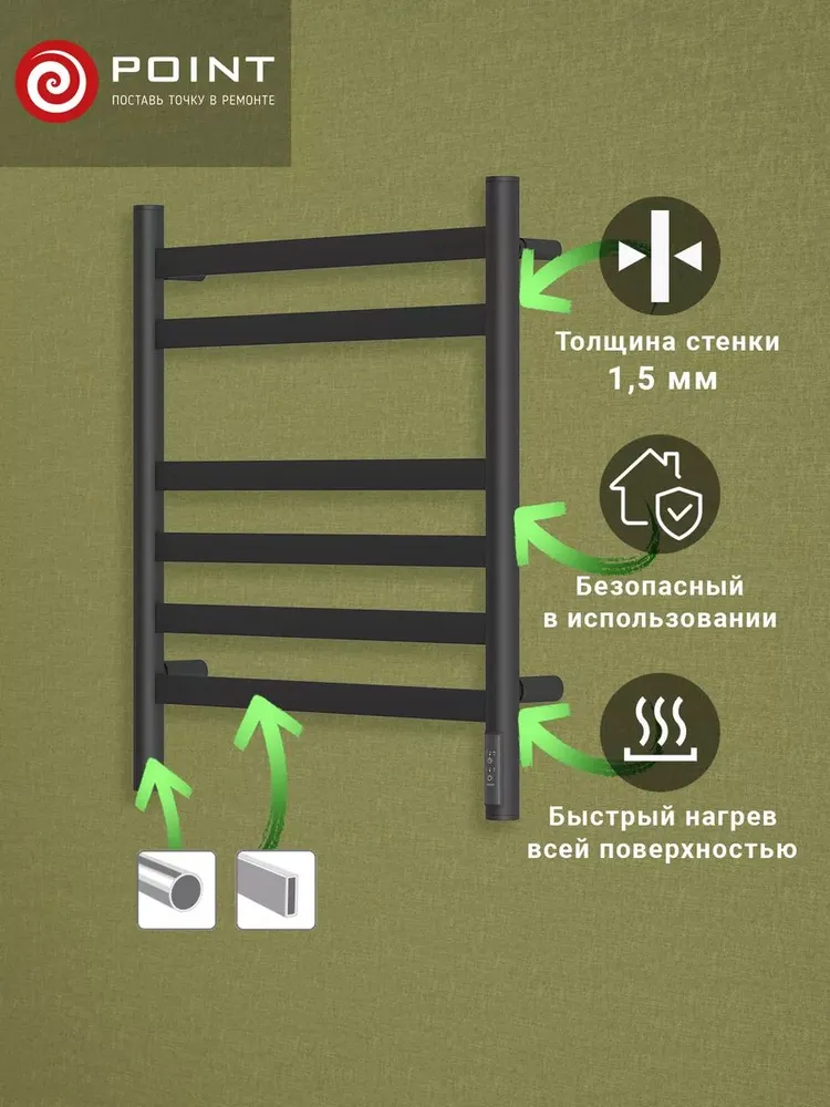 Полотенцесушитель электрический Point Селена PN16856B П6 500×600, диммер справа, черный: сравнение цен, характеристики, фото, актуальное наличие и цены.