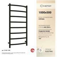 Электрический полотенцесушитель Сунержа Галант 4.0 1000х500 МЭМ справа матовый чёрный
