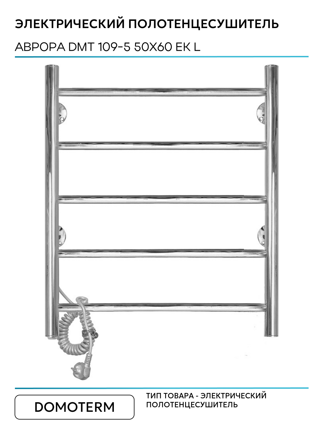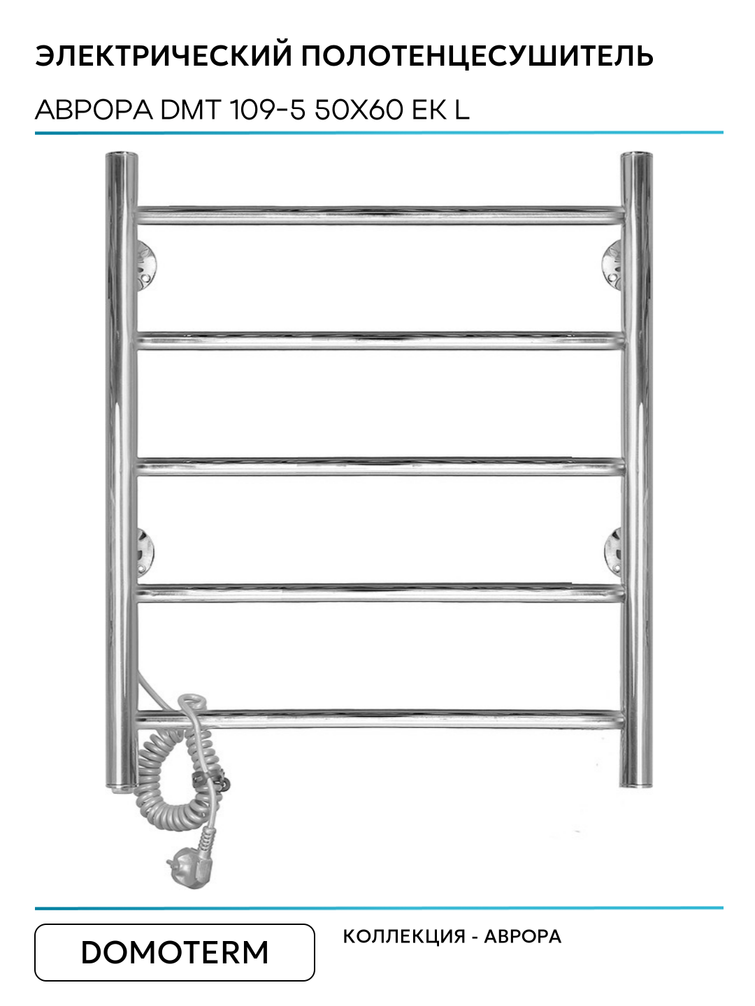 Электрический полотенцесушитель / Сушилка для ванной Domoterm Аврора DMT 109-5 50×60 EK L Хром: сравнение цен, характеристики, фото, актуальное наличие и цены.