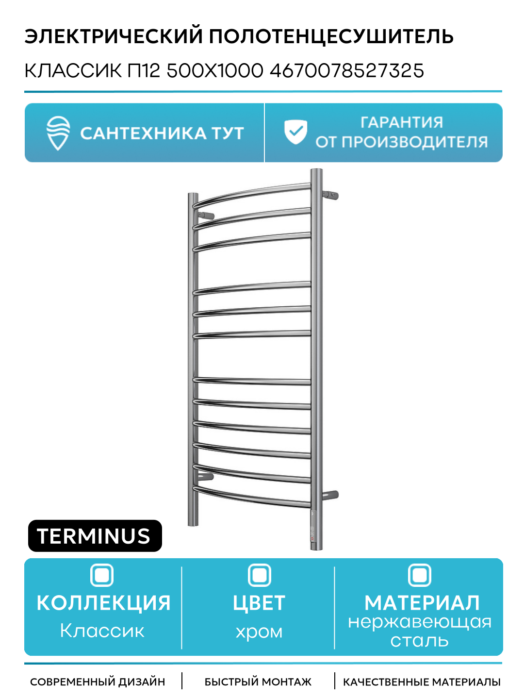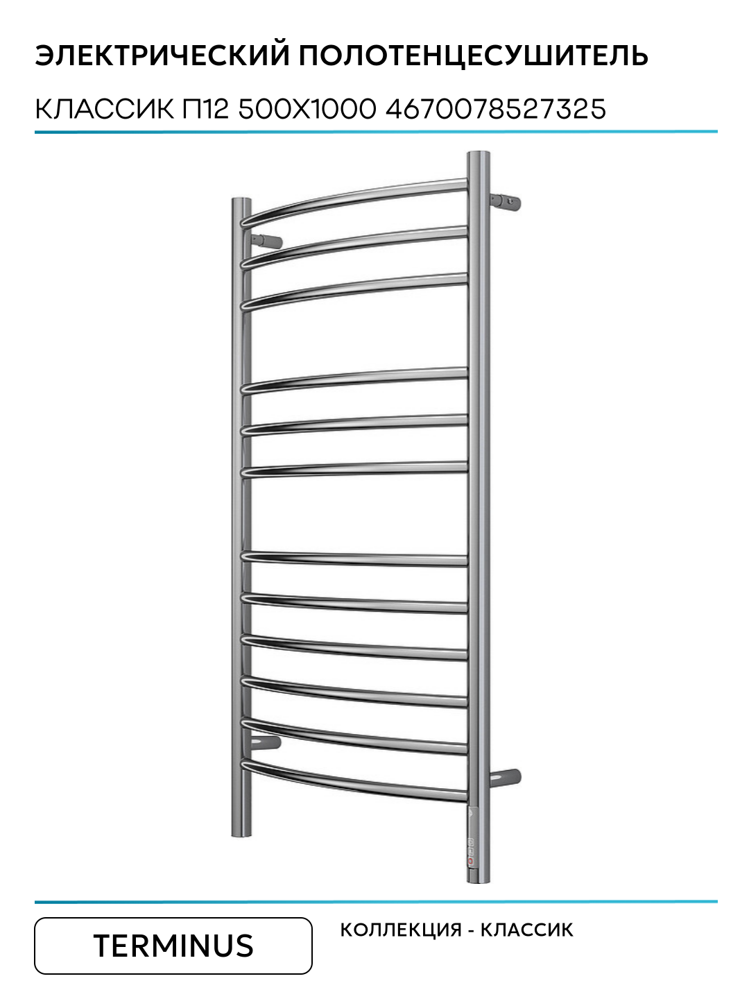 Полотенцесушитель электрический Terminus Classic П12 500х1000 4670078527325: сравнение цен, характеристики, фото, актуальное наличие и цены.