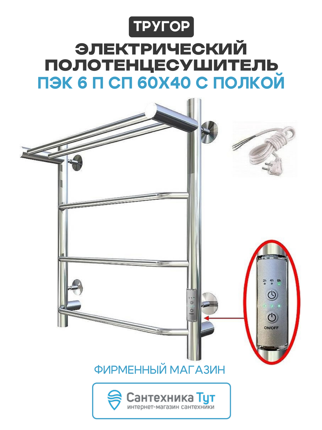 Купить Электрический полотенцесушитель Тругор ПЭК 6 П СП 60×40 с полкой Хром нержавеющая сталь с доставкой по всей России. Электрический полотенцесушитель Тругор ПЭК 6 П СП 60×40 с полкой Хром нержавеющая сталь: сравнение цен, характеристики, фото, актуальное наличие и цены.