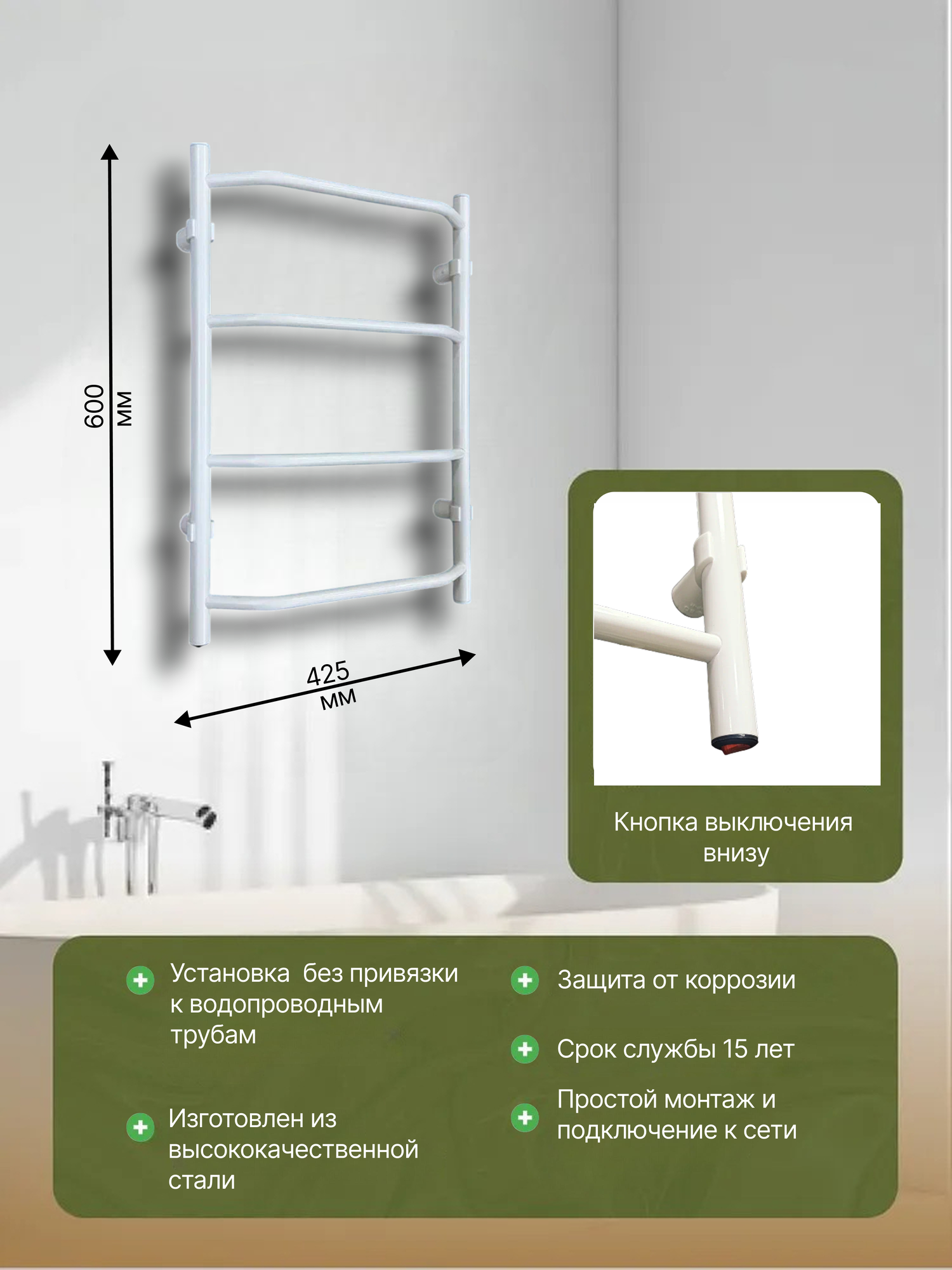 Купить Электрический полотенцесушитель Виктория с греющим кабелем Белый RAL 9016 400×600 Кнопка + Пластик с доставкой по всей России. Электрический полотенцесушитель Виктория с греющим кабелем Белый RAL 9016 400×600 Кнопка + Пластик: сравнение цен, характеристики, фото, актуальное наличие и цены.