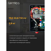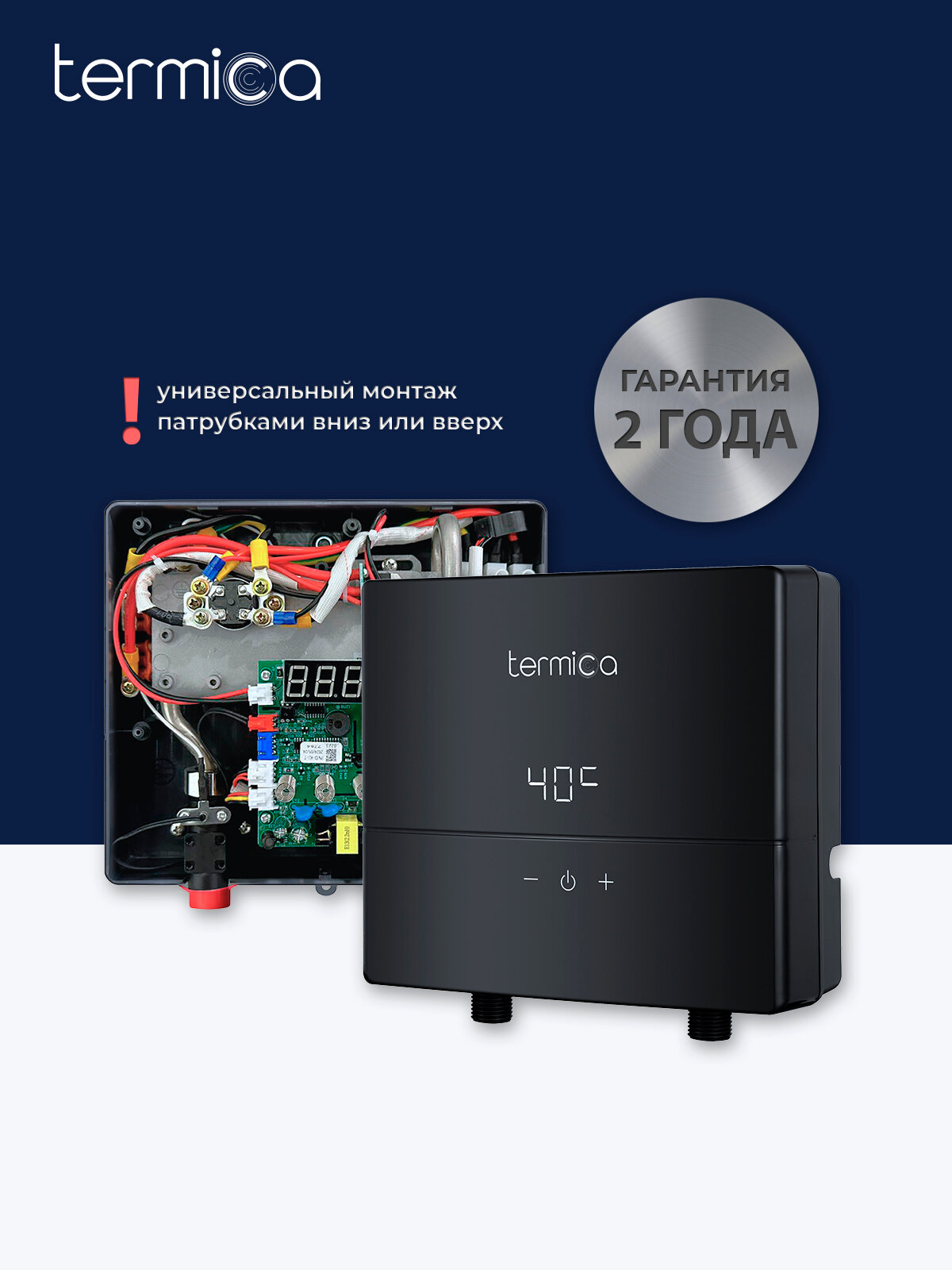 Электрические проточные водонагреватели TERMICA NIXY предназначены для приготовления горячей воды в бытовых, санитарных и гигиенических целях. В устройстве используется инновационный теплообменник с т. н. "сухим нагревом", в котором отсутствует прямой контакт нагревательных элементов с водой, что предотвращает образование накипи и продлевает срок службы водонагревателя. Автоматика прибора обеспечивает плавную регулировку мощности, в зависимости от текущего протока, позволяет добиться максимального комфорта нагрева и избежать ожогов горячей водой при эксплуатации.